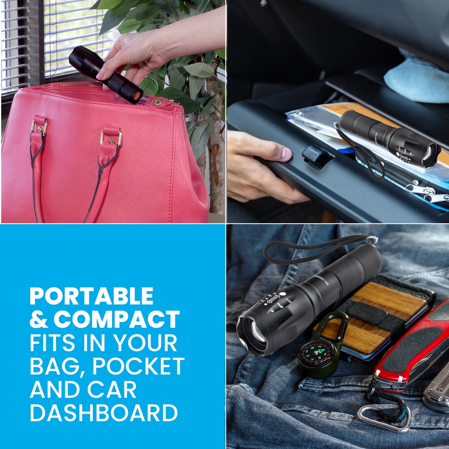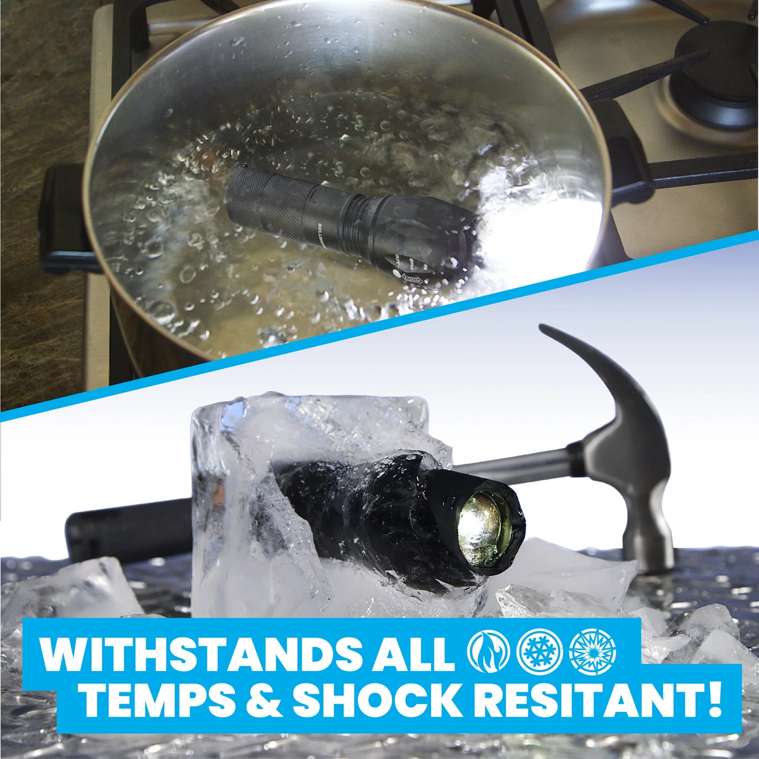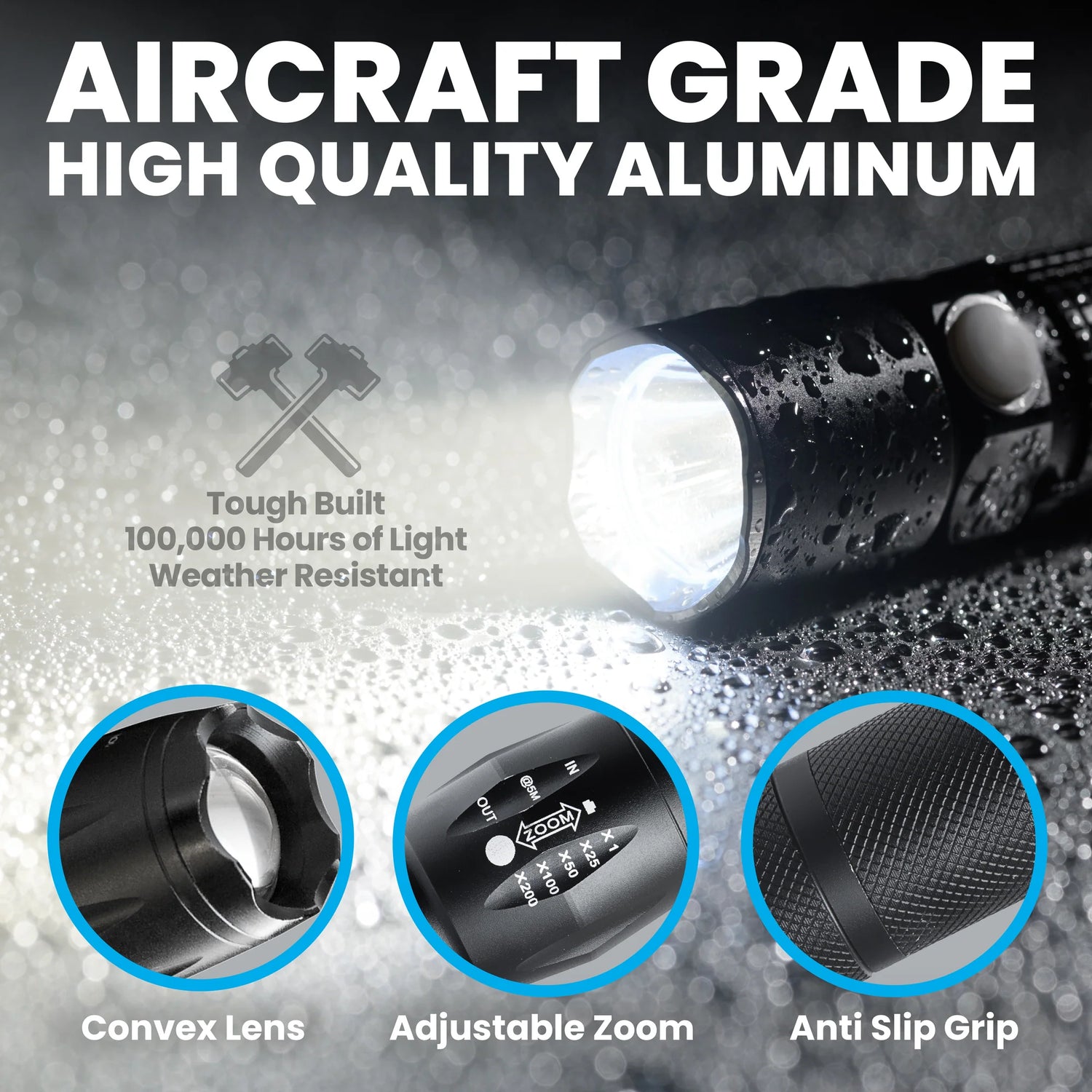 TacLight is made from air-craft grade aluminum and can withstand extreme temperatures from freezing to boiling. It is water-proof and shock resistant. TacLight has built-in zoom function and high-powered bulbs are 40x brighter than your regular flashlight. It has 5 modes, high brightness, medium brightness, low brightness, Strobe (intermittent flashing), SOS (emergency signal). TacLight Tactical Flashlight provides you with with up to 100,000 hours of ultra bright light!