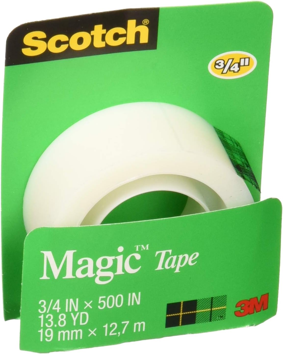 Scotch Magic Tape Refill - the perfect tool for wrapping gifts, organizing your office, and tackling school projects. Its permanent and invisible adhesive guarantees discreet and effective repairs and mends. Plus, the tape can be written on with pencil or ballpoint pen for easy labeling and note-taking. Trust Scotch Magic Tape for all your needs!