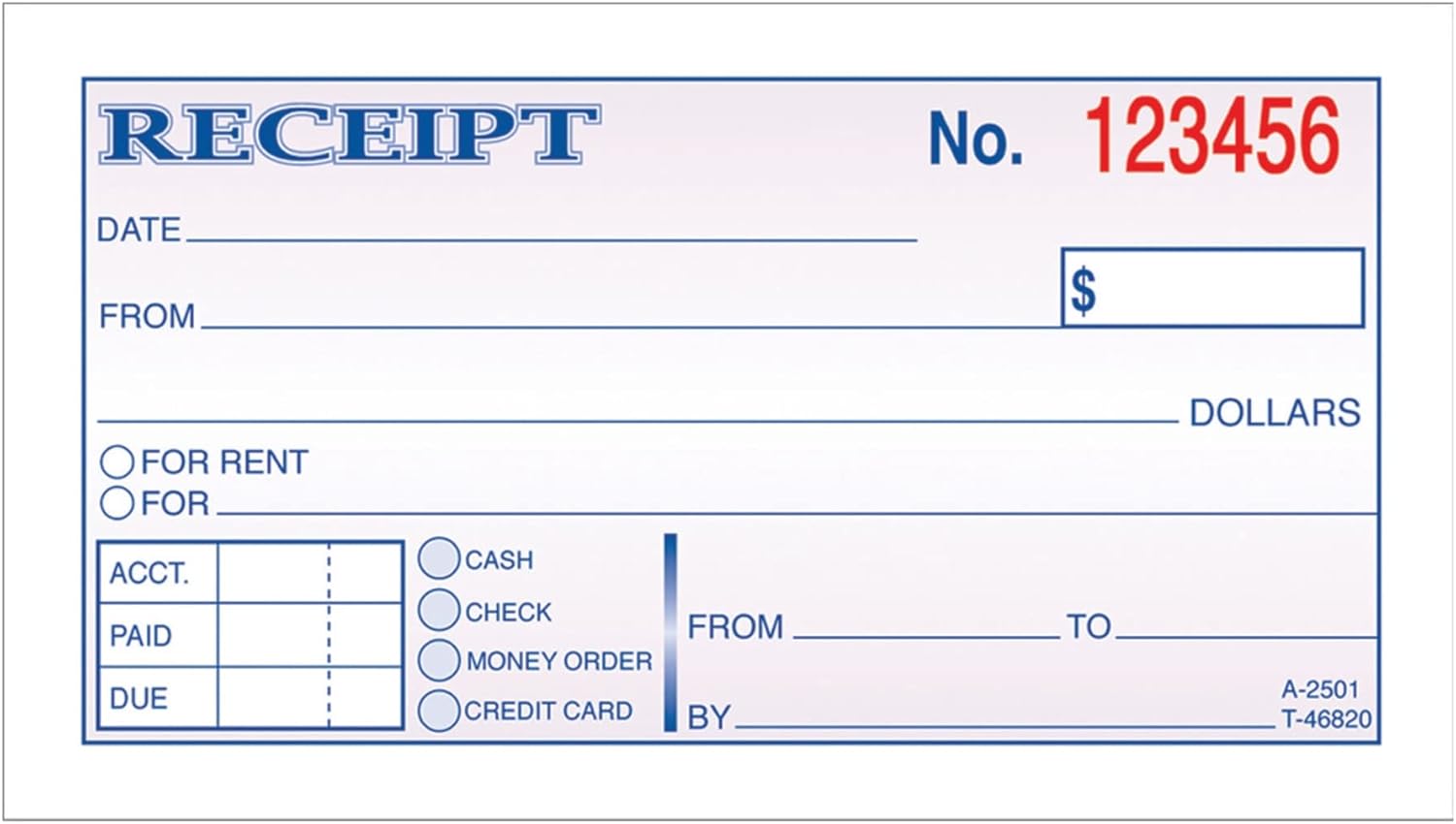 Adams Carbonless Money and Rent Receipt - Two Parts, 50 Sheets