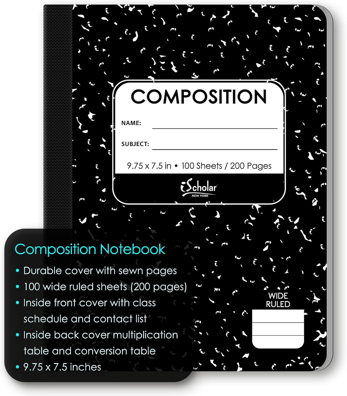 iScholar Black and White Marble Composition Book - Wide Ruled, 100 Sheets