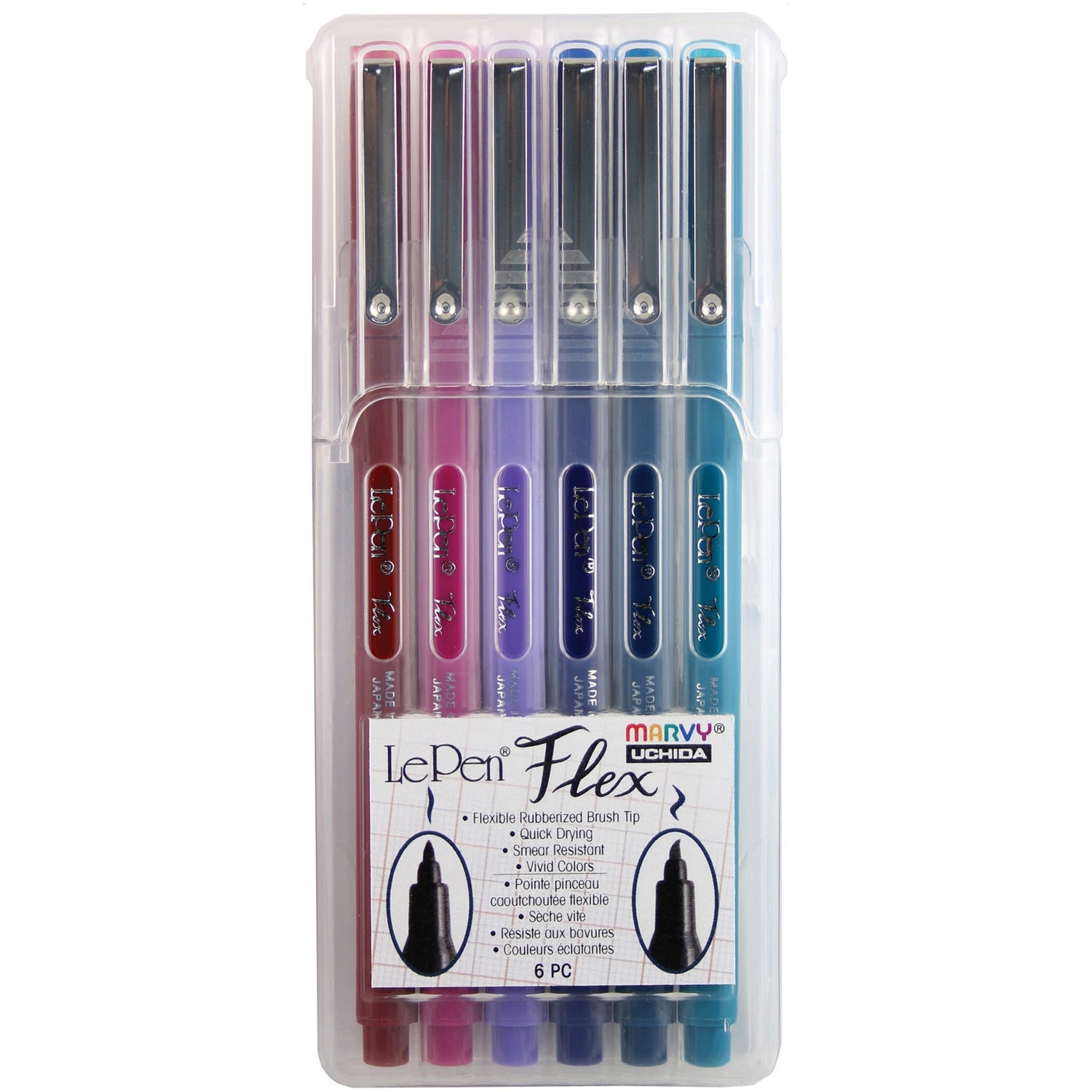 Unleash your creativity with Uchida of America Jewel Le Pen Flex! This 6 count set includes jewel tone pens perfect for hand lettering, journals, planners, and scrapbooking. The pens boast a flexible rubberized brush tip and a smooth sleek barrel design, making them a pleasure to use and resulting in stunning designs. Let your imagination run wild and elevate your projects with these high-quality pens.