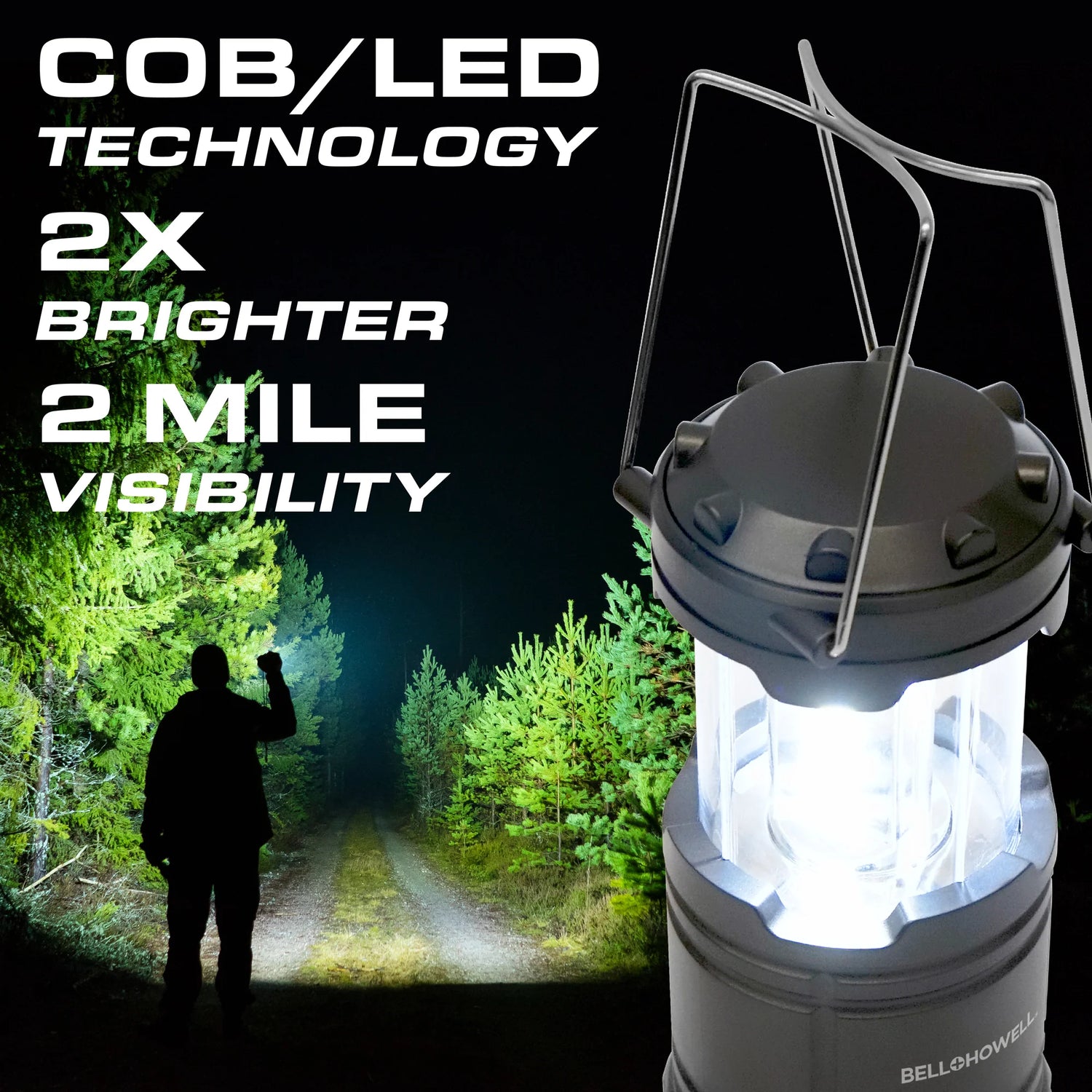 The Bell + Howell TacLight Lantern Mini features a collapsible design that extends to 6” and compresses to 4.2” for easy storage in your car’s glove box, overhead compartment, or backpack. It delivers outstanding brightness with COB LED technology, which reduces heat and extends bulb lifespan while maintaining strong illumination. Equipped with foldaway side handles, this lightweight lantern offers great portability and convenience for on-the-go use. Batteries are not included.