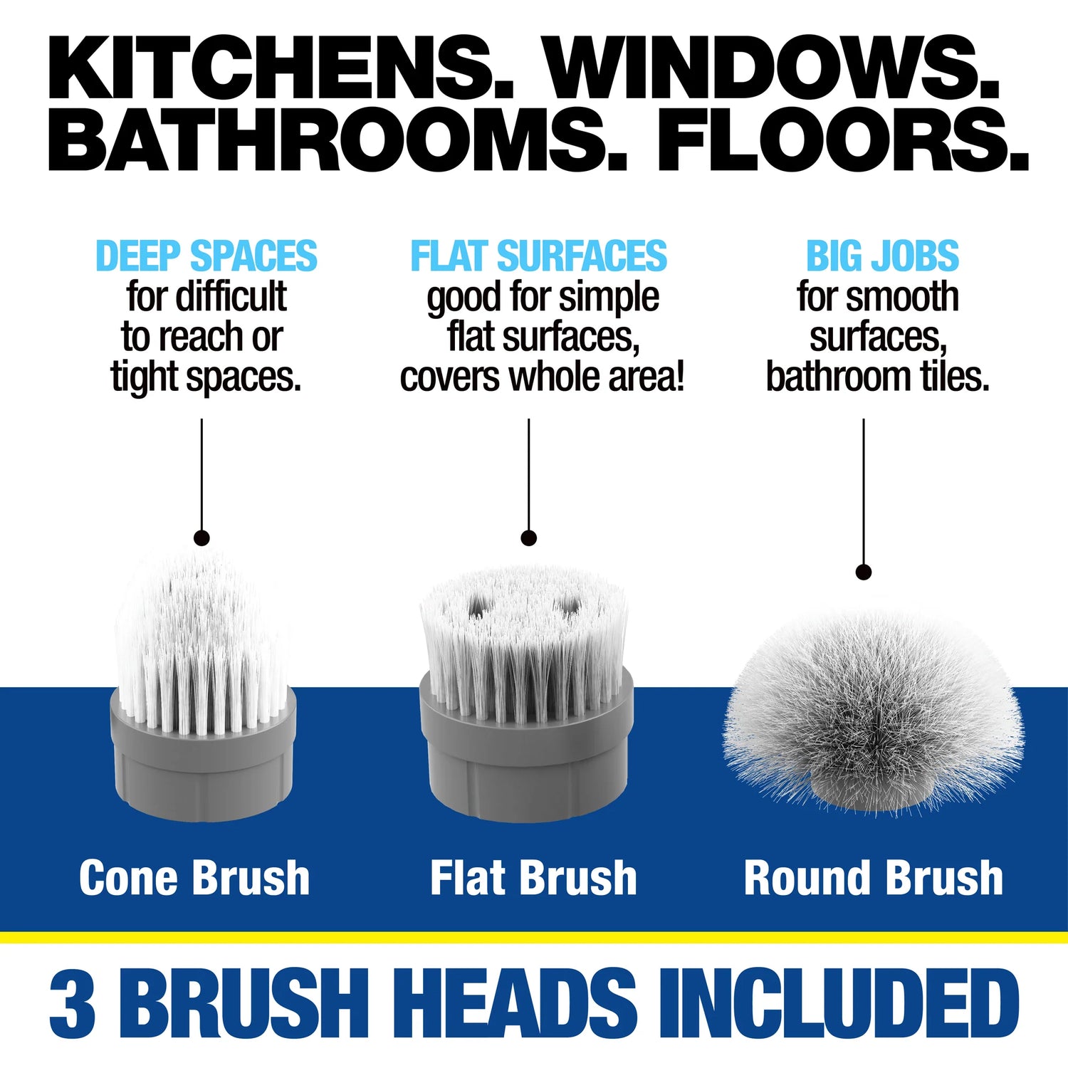 The Bell+Howell Scrubtastic Multi-Purpose Surface Rechargeable Power Scrubber is a versatile and powerful cleaning tool. With its 39-inch extension handle, this scrubber can reach difficult areas like ceilings, walls, and floors with ease. The Scrubtastic comes with three interchangeable brush heads, each designed for a different cleaning task: a flat brush for large areas, a corner brush for tight spaces, and a round brush for curved surfaces. This power scrubber is cordless and rechargeable, providing up to 60 minutes of continuous use on a single charge. The ergonomic handle and lightweight design make it comfortable to use for extended periods. Whether you're tackling tough stains in the bathroom, kitchen, or garage, the Bell+Howell Scrubtastic Multi-Purpose Surface Rechargeable Power Scrubber is a reliable and effective tool for any cleaning job.