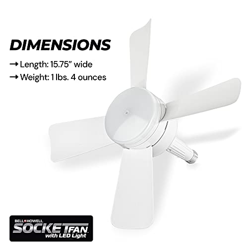 The Bell + Howell Socket FanLight will bring you light and breeze simultaneously with no wiring required. Easily screws in to any light socket and includes a remote control to toggle between the three fan and light settings all from the touch of a finger. With LED technology and an E26 medium base, the Socket Fanlight is sure to be a practical addition to any home, office or workspace.
