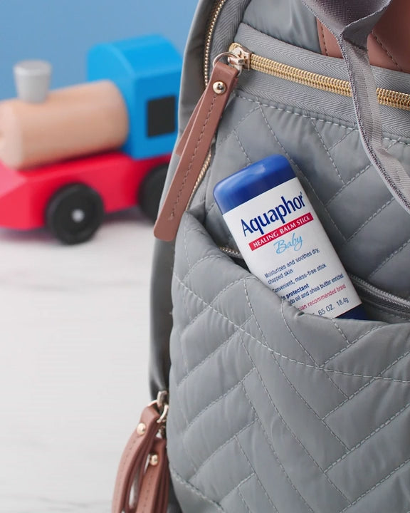 The Aquaphor Baby Healing Balm Stick delivers the power of Aquaphor in a convenient stick format. This versatile skincare solution for babies moisturizes and soothes dry, chapped skin, and protects skin to help heal drool rash and minor cuts and scrapes. A skin protectant enriched with avocado oil and shea butter, the new balm formula glides on easily and doesn't leave a sticky feel. This balm stick is ideal for babies' sensitive skin, and suitable for the whole family. The stick format allows for a mess-free application and is the perfect solution for busy parents and home and on-the-go. Aquaphor Baby Healing Balm Stick is fragrance free, paraben free and hypoallergenic. If you love Aquaphor Baby Healing Ointment, try the Aquaphor Baby Healing Balm Stick. From pediatrician-recommended brand Aquaphor.