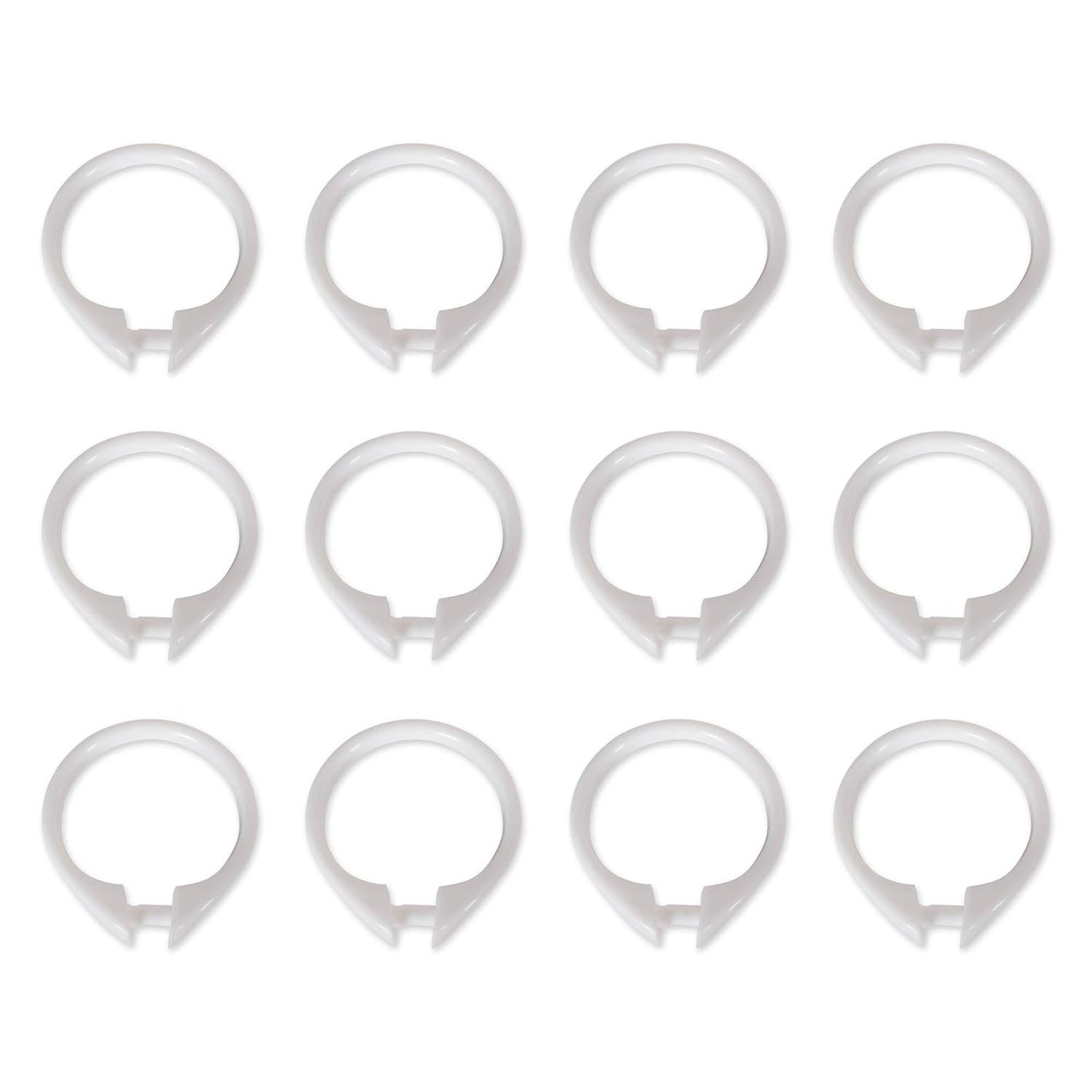 J&M Home Fashions Easy Snap Plastic Shower Curtain Ring Hooks - White, Set of 12