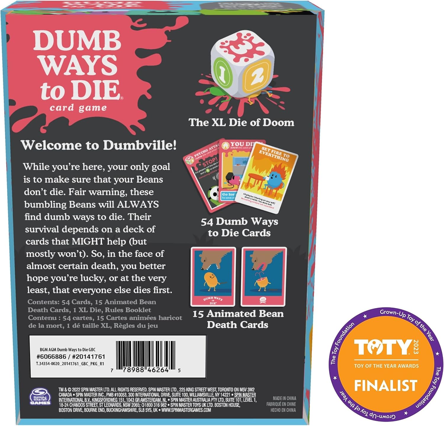 Experience the viral sensation in real life with Dumb Ways to Die Card Game! Join the fun in Dumbville and protect your beans from hilarious deaths like taking off a helmet in outer space or eating super glue. Beware, these beans will always find dumb ways to die, but with special cards, you just might save them. Can you outsmart your opponents and ensure your beans' survival? Only one way to find out!