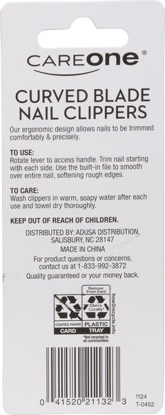 Get our CAREone Curved Blade Nail Clippers for a precise, comfortable, and convenient nail trimming experience. Made of durable stainless steel with an ergonomic design, our clippers have a built-in file for an easy and polished finish. Don't forget to wash them after use for long-lasting care and precision.