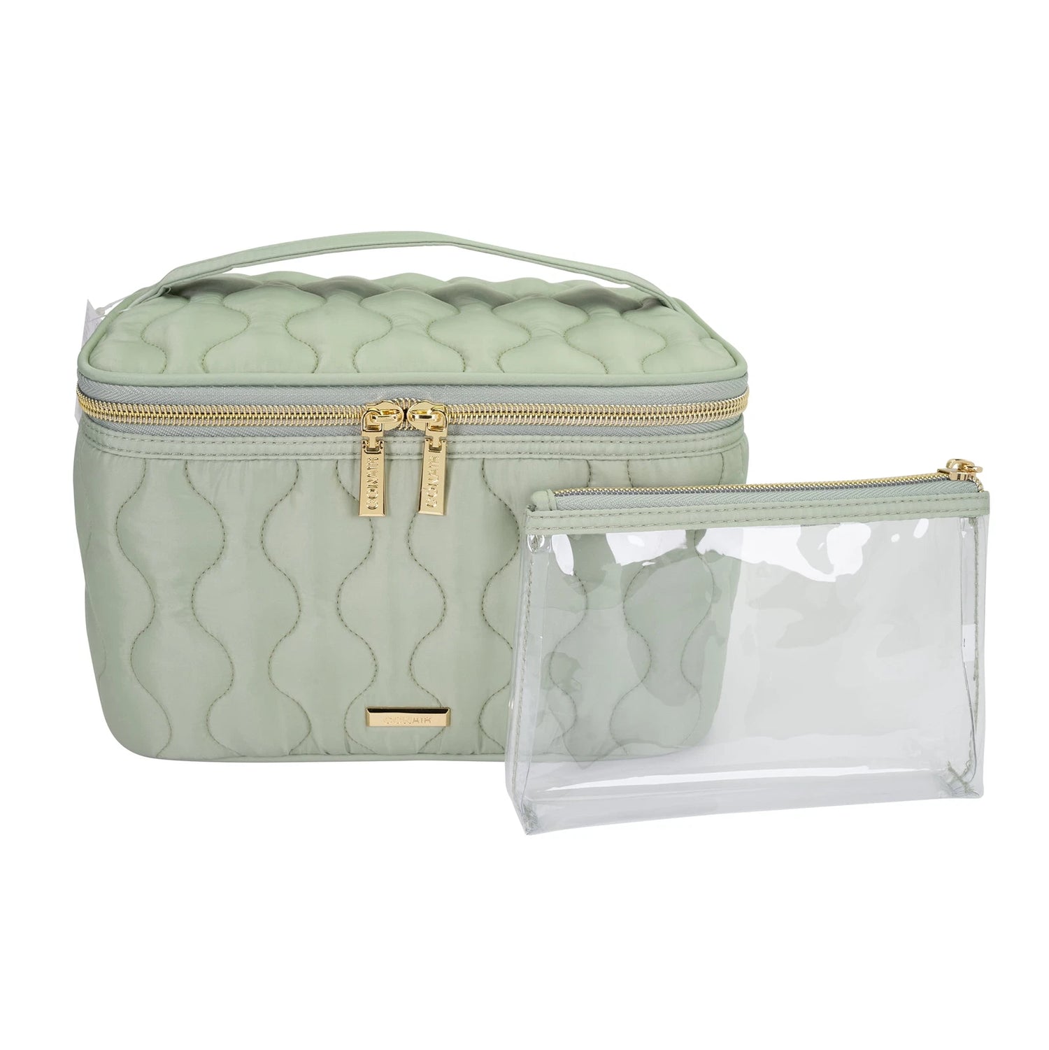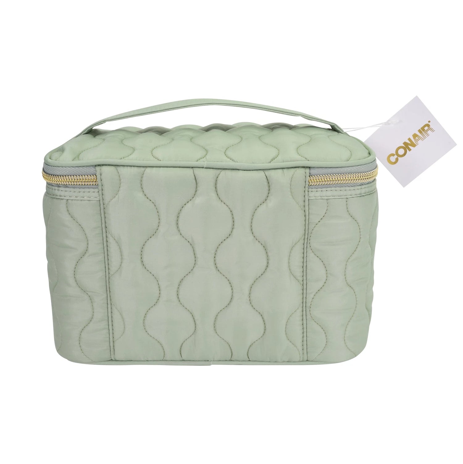 Unleash your inner glam goddess with the Conair 2 Piece Quilted Sage Train Case. Revolutionize your beauty organization game with this set that includes a sleek train case and a clear PVC pouch. Not only is the PVC pouch easy to clean and maintain, but it also adds an extra touch of practicality to your beauty routine without sacrificing style. Its compact design makes it perfect for travel, while its spacious interior allows you to store all your beauty essentials. Elevate your beauty routine with the perfect blend of style and functionality!