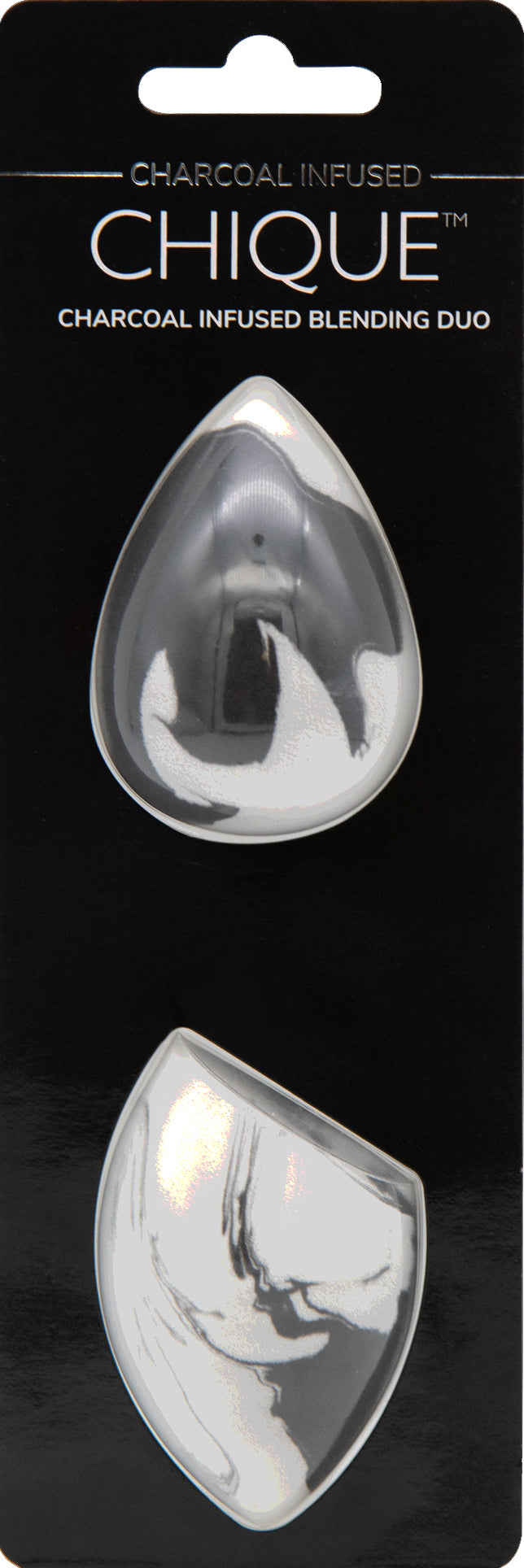 Unlock the power of flawless makeup application with our CHIQUE Charcoal Infused Blending Sponge Duo. These charcoal-infused, latex-free sponge applicators effortlessly blend liquids, creams, oils, and moisturizers for a stunning, airbrushed finish that lasts all day. Experience the ultimate versatility and performance of our CHIQUE Charcoal Infused Blending Sponge Duo for flawless, glowing skin.
