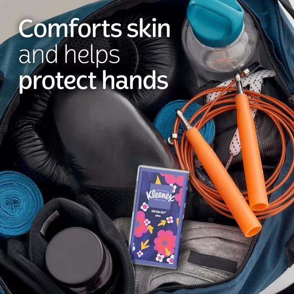 Dinner for two? Hiking adventure? Runny noses can happen anywhere. Stay prepared with Kleenex On-the-Go Facial Tissues. Whether you’re traveling solo or bringing friends along, with Kleenex On-the-Go Facial Tissues, you get 8 packs of 10 tissues, so you have plenty of tissues for any occasion. Our soft, durable, thick 3-layer facial tissues in a convenient travel pack—small enough to fit in pockets, purses, backpacks or travel bags—are ultra-absorbent to help you stay prepared wherever you are. Plus, you can find one of these Kleenex travel tissue packs that fits the occasion because each pack of tissues is available in various colors and designs. Got the sniffles? Soothe that runny nose by also trying a box of Kleenex Soothing Lotion or Kleenex Ultra Soft facial tissues.
