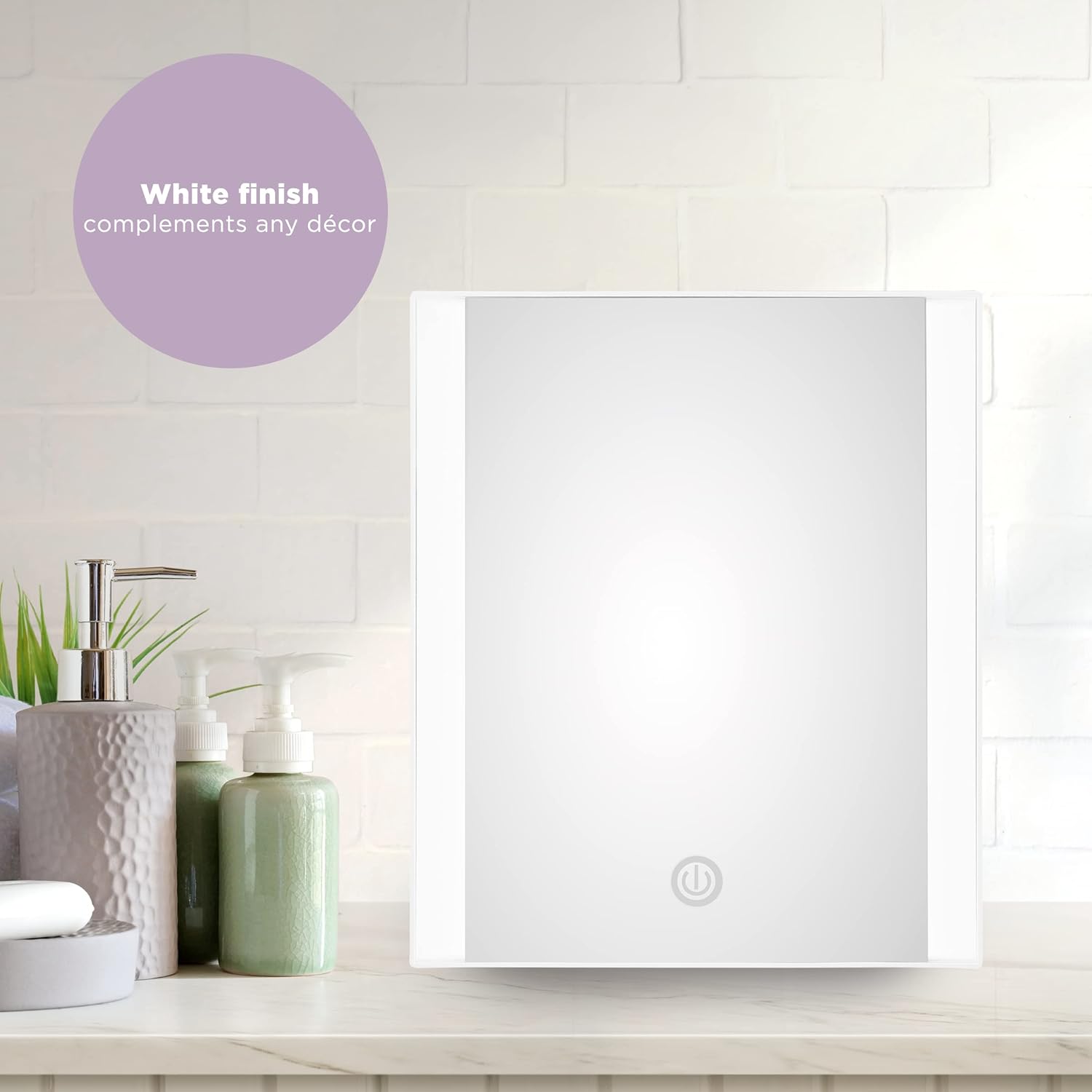 The Conair Lighted Makeup Vanity Mirror features a battery-powered, energy-saving LED bulb that offers bright, reliable illumination and never needs replacing. Its 1X magnification and adjustable base provide the ideal angle for precise makeup and grooming, while the glossy white frame complements any décor. With a touch-screen On/Off switch and a built-in USB port for lighting only, this mirror enhances your beauty routine with style and convenience.