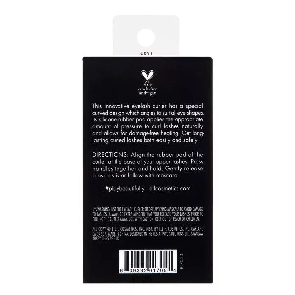 The innovative e.l.f. Eyelash Curler has a special curved design which angles to suit all eye shapes. Its silicone rubber pad applies the appropriate amount of pressure to curl lashes naturally and allows for damage-free heating. Get long-lasting curled lashes in seconds with this tool. Add a swipe of your favorite e.l.f. mascara and curled lashes remain in perfect shape all day.