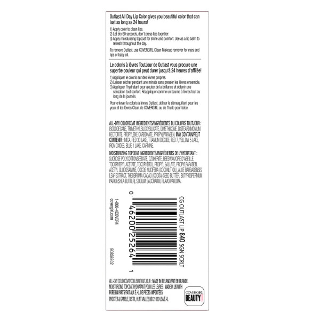 Get brilliant lip color that lasts with Covergirl Outlast All-Day Lip Color. This advanced formula keeps lips looking vibrant and fresh for up to 24 hours. The nourishing topcoat locks in color and provides instant moisture for soft, shiny lips. And feel free to smooch away—this transfer-resistant lip color is kiss-proof, smudge-proof, and food-proof. Pro-tip: Pair with any Covergirl Outlast foundation for an all-day, worry-free look.