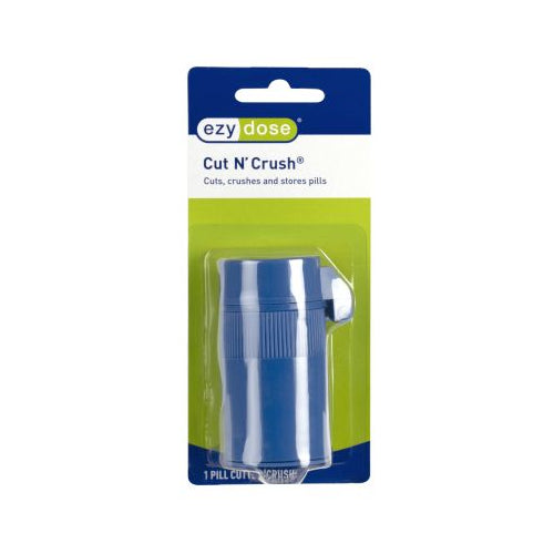 The Ezy Dose Cut N' Crush pill cutter/crusher features both a sharp stainless steel blade that makes a clean cut every time and the ability to crush pills into a fine powder. There is a built-in storage compartment plus a drinking cup for on-the-go convenience. Ezy Dose is the leader in innovative easy-to-use medication management products. From pill cutters, pill crushers and a full line of easy fill products, to calibrated medicines spoons, portable pill containers and droppers. Ezy Dose products make living healthier simply easier.