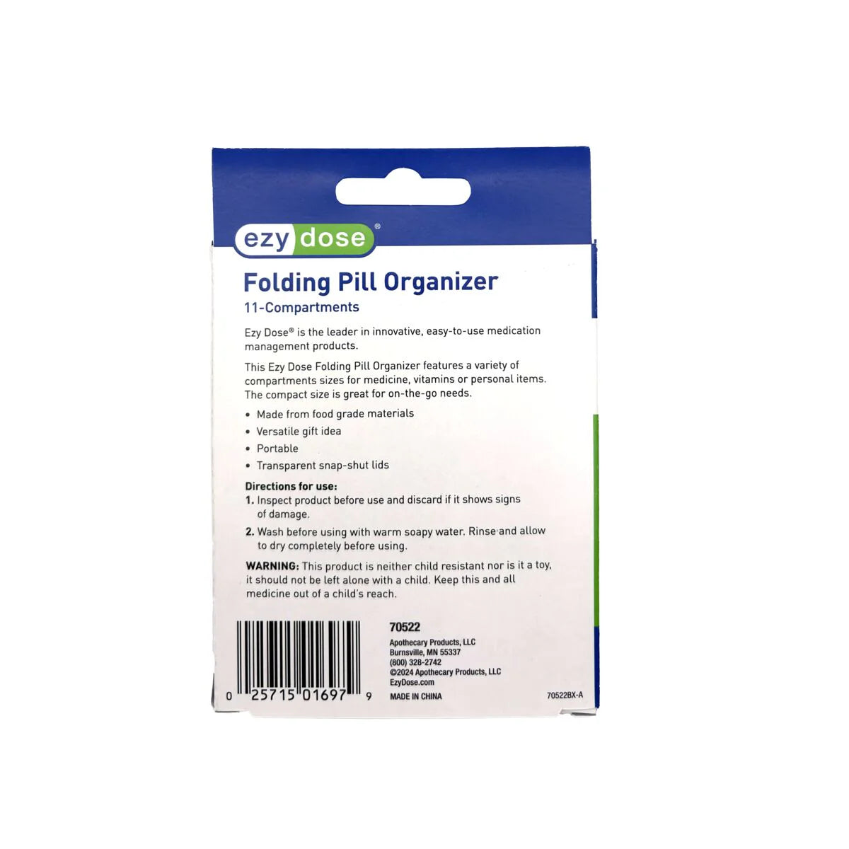 Ezy Dose Foldable Travel Pill Organizer, Assorted