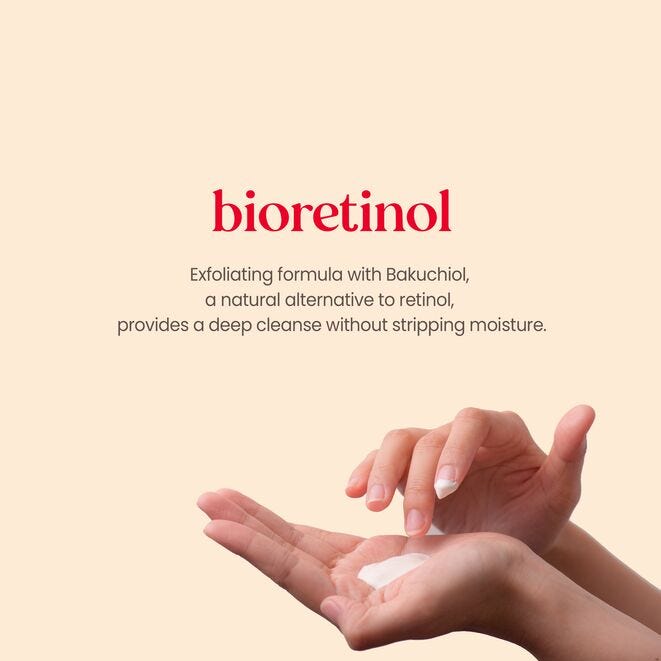 This cream cleanser deeply cleans without stripping vital moisture from your skin. Infused with Bakuchiol—nature’s answer to retinol—and Vitamin E, it helps to reveal smoother, healthy-looking skin, reduce dullness, and prime your skin for the rest of your regimen.