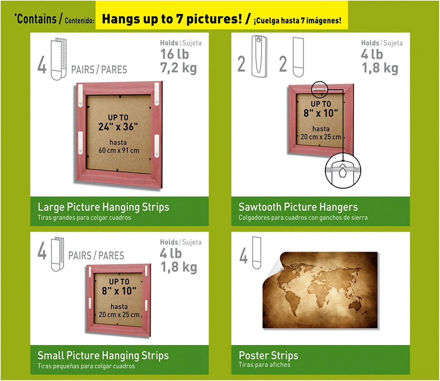 Make your space neat and stylish without damage using the Command Picture Hanging Kit in White. This kit includes multiple sizes of picture hanging strips, poster strips, and sawtooth hangers, allowing you to hang up to seven items easily. Designed for damage-free decorating, these strips hold firmly on various indoor surfaces like painted walls, wood, tile, and glass, all without nails or tools. When it’s time to change your decor, they remove cleanly without leaving marks or residue, making them ideal for apartments, dorms, or offices. Simplify decorating with a solution that’s strong, versatile, and hassle-free.