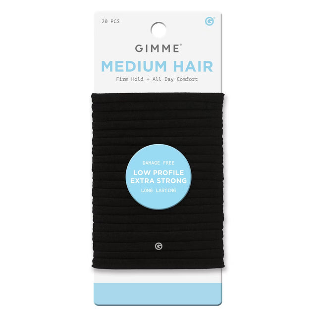 GIMME Medium Hair Firm Hold + All Day Comfort Low Profile Hair Tie Bands - Black, 20 count