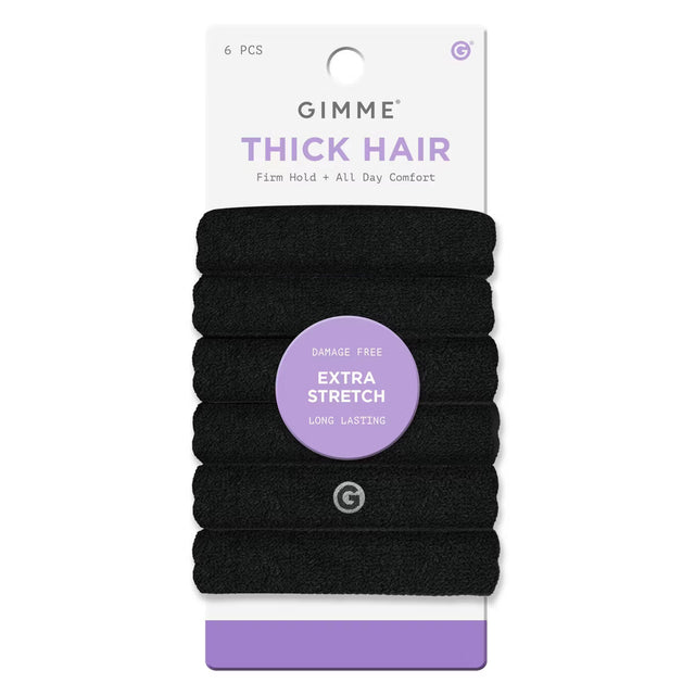 GIMME Thick Hair Firm Hold + All Day Comfort Extra Stretch Hair Bands - Black, 6 count
