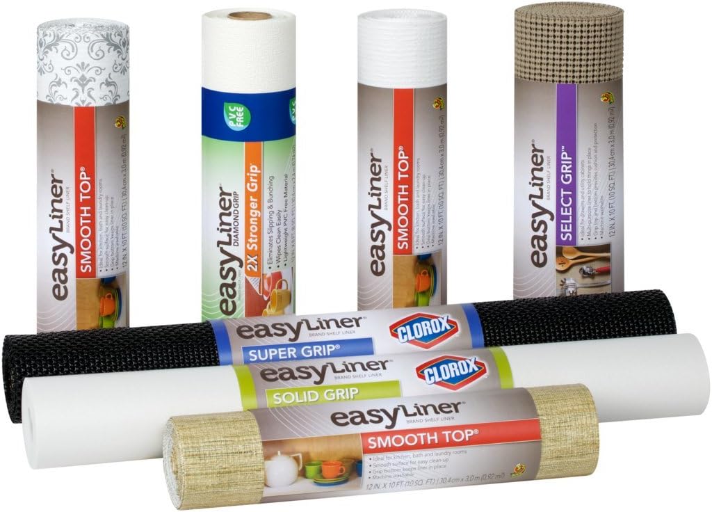The DUCK Smooth Top EasyLiner Shelf and Drawer Liner in Taupe offers an ideal solution for organizing kitchen, bathroom, and laundry room shelves. Its smooth, solid surface allows dishes and glasses to slide effortlessly while containing spills and crumbs. The non-adhesive grip bottom securely holds the liner in place without leaving residue. Easy to clean and reusable, it’s machine washable in cold water and dries flat. Simple to measure, cut, and install, this durable liner comes in widths perfect for narrow or wide drawers, blending seamlessly with your decor. Proudly made in the USA for quality you can trust.