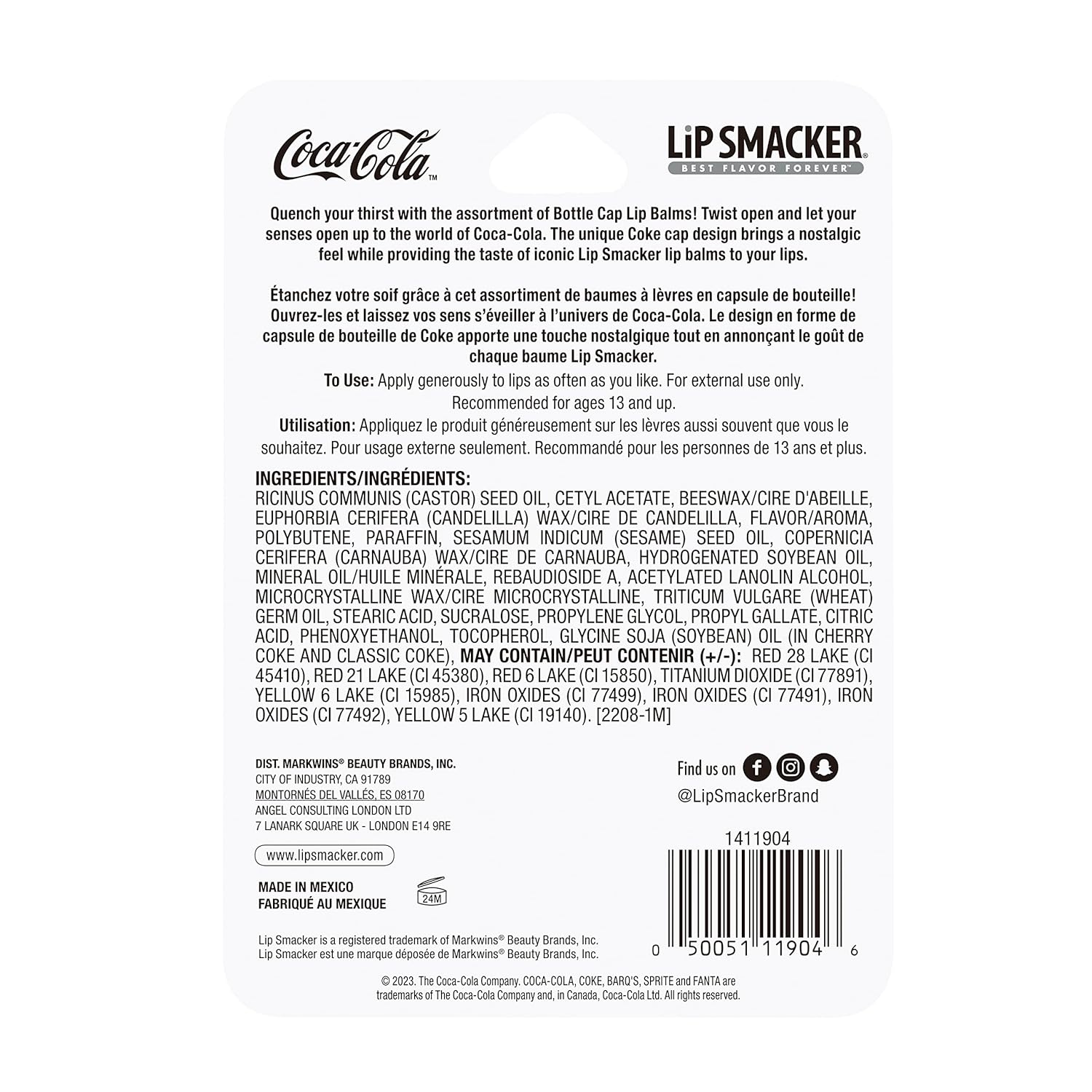Get ready to indulge in some nostalgic fun with our Lip Smacker Coca Cola Bottle Cap Lip Balm, 3 count! Inspired by the iconic Coke Bottle Cap, each lip balm is bursting with the delicious flavors of your favorite Coca-Cola sodas. Not only do they taste amazing, but they also provide moisturizing nutrients that glide on your lips with ease. Whether it's for a stocking stuffer, a thank you gift, or a goodie item, Lip Smackers are sure to bring a smile to anyone's face. Make it the first ingredient in your kids' first makeup kits and watch them light up with excitement.