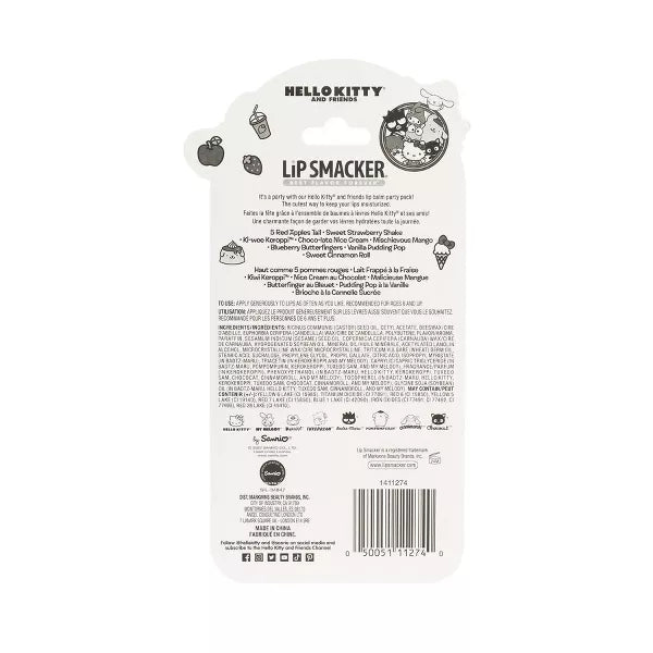 Say “Hello” to some of your favorite Sanrio characters in the form of this extra-fun 8-piece lip balm party pack from Lip Smacker! Hello Kitty joins her friends including some favorites like My Melody, Little Twin Stars, and Chococat! With a full assortment of delicious flavors available, these lip balms leave lips softer, more moisturized, and instantly happier.