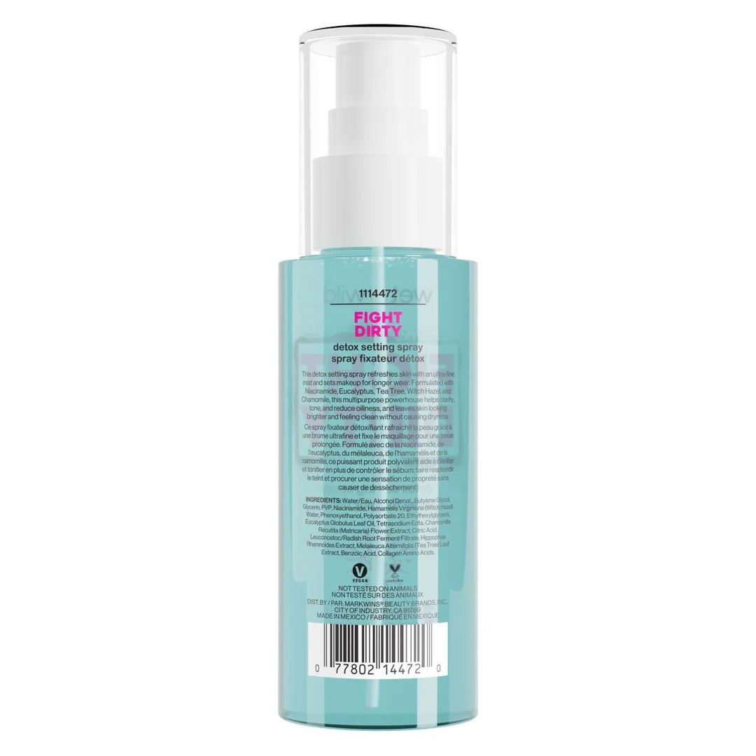 When your makeup isn’t standing up to the wear and tear of the day, it’s time to fight back and fight dirty with wet n wild’s Fight Dirty Detox Setting Spray. Just spray it on over your makeup and the ultra-fine mist sets your makeup while leaving a natural finish. Formulated with a nourishing blend of ingredients known to help clarify and tone the skin, this setting spray helps keep your skin clear and your makeup in place.