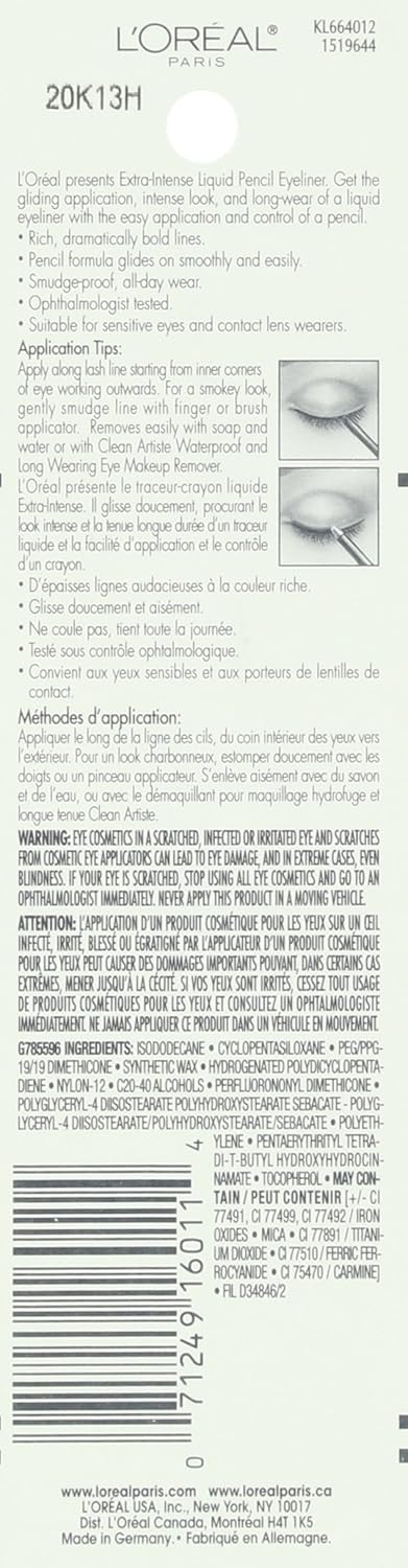 Achieve bold, lasting definition with L'ORÉAL PARIS Extra-Intense Pencil Eyeliner. This innovative formula combines the precision control of a pencil with the smooth, gliding application of liquid eyeliner. The included smudger tool lets you customize your look, while the smudge-resistant formula ensures your dramatic black liner stays put from morning through night. Perfect for creating sharp lines or softly blended effects that command attention all day long.