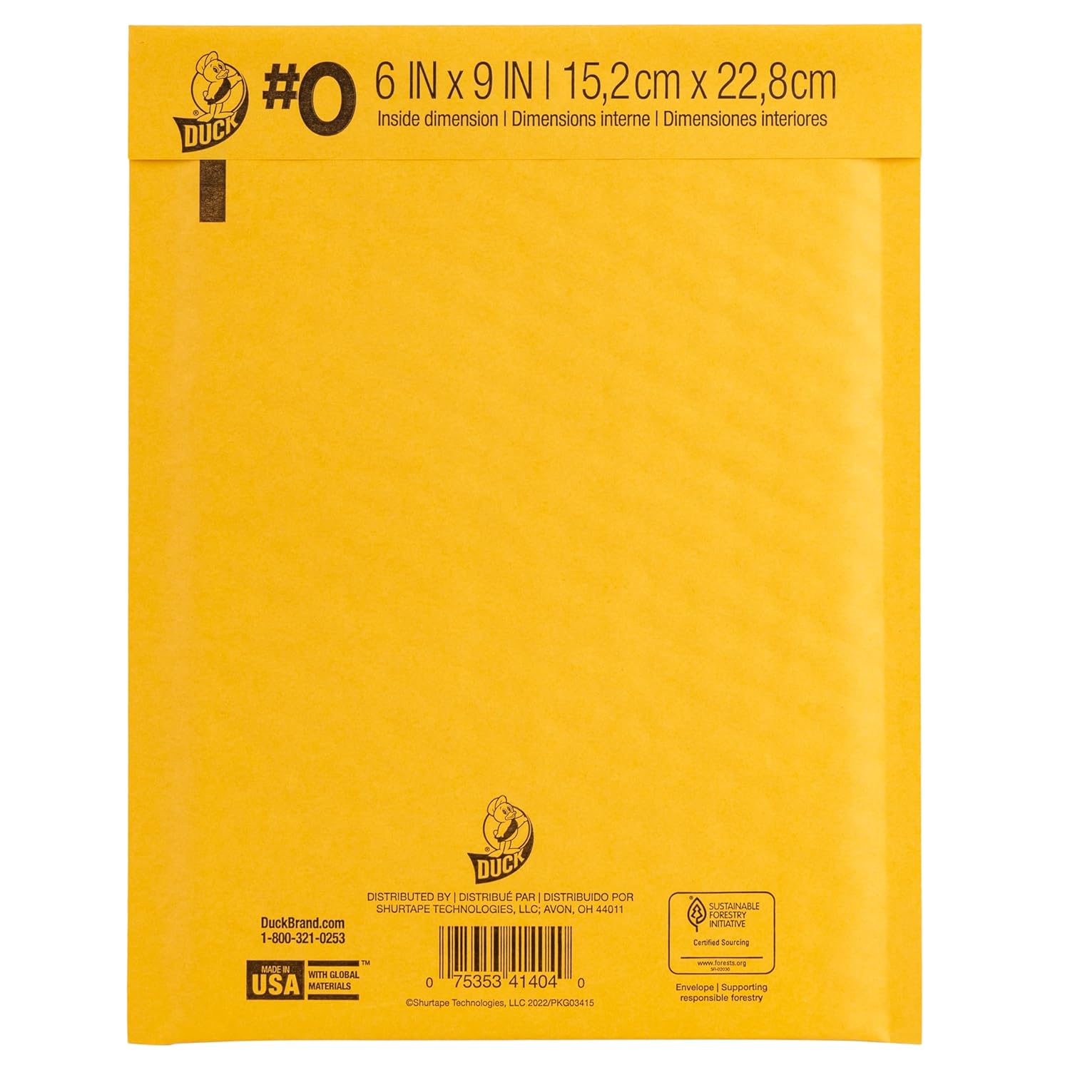 DUCK Kraft Bubble Mailer Size #0 - Manila, 6" x 9"