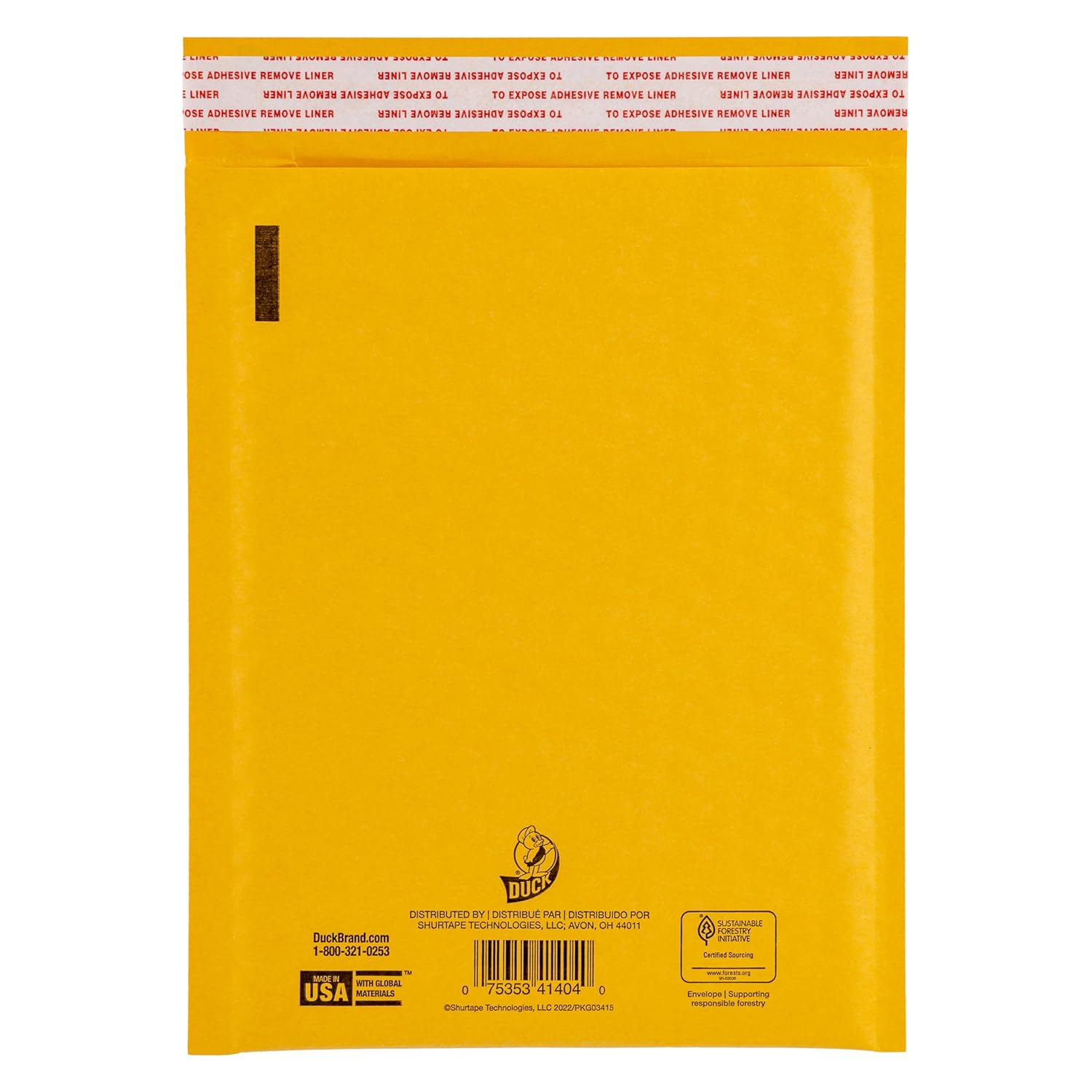 Duck Brand Kraft Bubble Mailer Size #0 offers effortless mailing with its self-sealing design, ensuring a secure closure every time. The interior bubble lining provides reliable cushioning to protect your items during transit. Shipping labels stick firmly to the durable kraft paper exterior, making shipping hassle-free. Each box includes 25 mailers measuring 6" x 9". Proudly made in the USA, these mailers combine quality and convenience for your shipping needs.