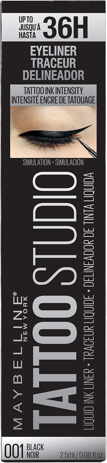 MAYBELLINE New York Tattoo Studio Liquid Ink Eyeliner Eye Makeup, 001 Black, 0.08 oz