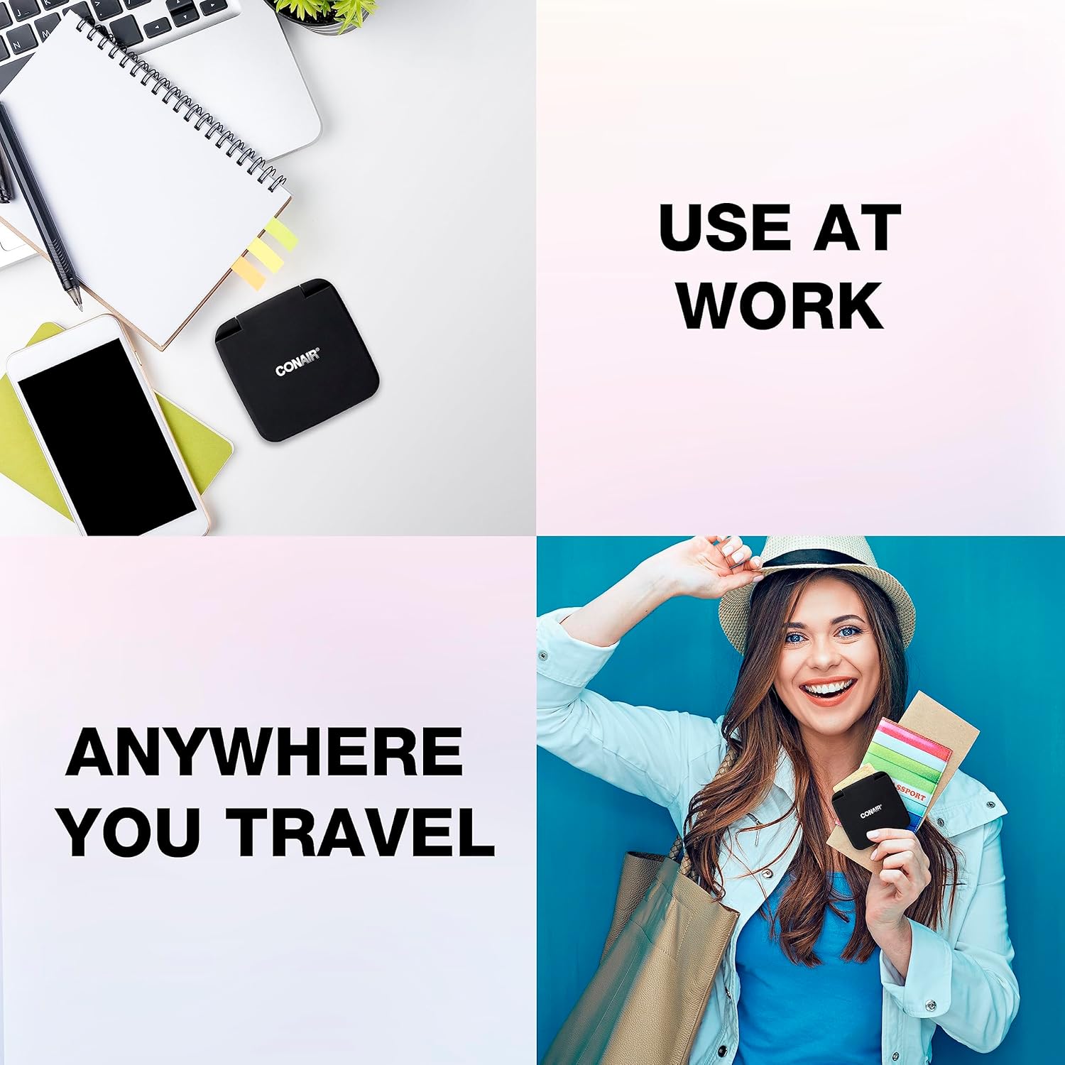 Get ready to glam up on the go with the Conair Standard Compact Pocket Mirror! Whether you need to touch-up your makeup, tweeze your eyebrows, or just admire your flawless complexion, our dual-sided magnification ensures you'll always be looking your best. With the trusted quality of Conair, this must-have beauty tool will become your new go-to for all your grooming needs. Elevate your beauty routine with convenience and style and never leave home without it.