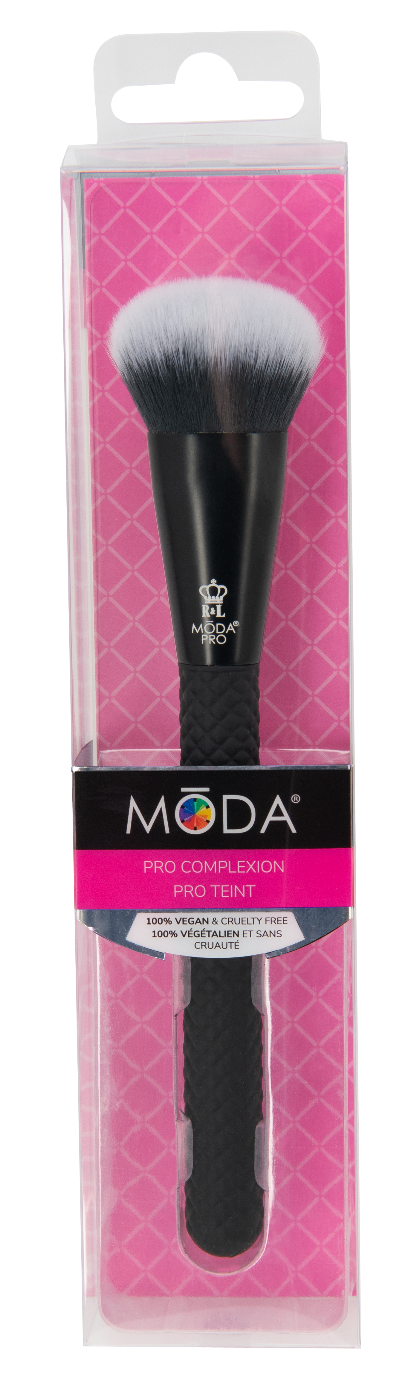 The MODA Pro Complexion Brush is expertly designed to deliver flawless makeup application with ease. Crafted from 100% vegan and cruelty-free materials, this brush offers a soft yet dense texture that blends foundation, powders, and creams seamlessly for a smooth, airbrushed finish. Part of the 'Pro' collection, it ensures precision and durability, making it an essential tool for both everyday use and special occasions. Elevate your beauty routine with a brush that combines ethical standards with professional performance.