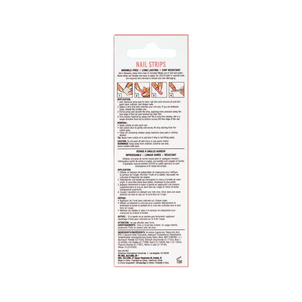 Get a flawless, mess-free manicure in minutes! Made from real nail polish, these strips are flexible, easy to apply and can last up to 7 days. No LED/UV light or special tools required. Removal is fast, easy, and non-damaging to the natural nail. Each pack of Nail Addict Nail Strips include: