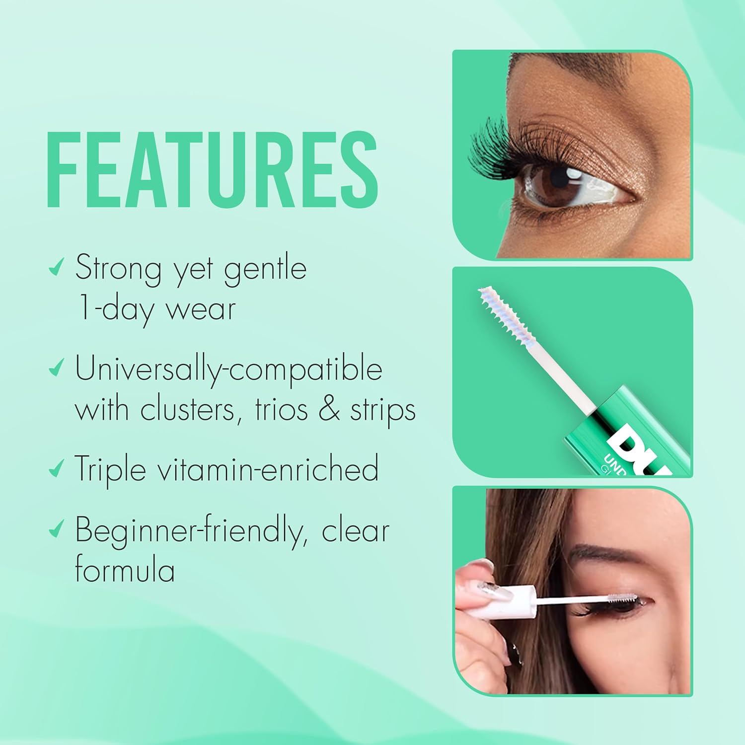Achieve flawless underlash application with this innovative two-in-one system featuring a crystal-clear adhesive and matching sealant. The lightweight formula bonds securely without irritation, keeping lashes perfectly positioned from morning through night. Enriched with vitamins C and E, it nourishes lashes while providing latex-free comfort for all-day wear. Works seamlessly with cluster lashes, strips, trios, and extensions to create a naturally enhanced look. The transparent finish forgives application mistakes and blends invisibly with any makeup style, while the precision mini spoolie applicator delivers mascara-like control for exact placement every time. Waterproof seal ensures your underlash investment stays locked in place all day long.