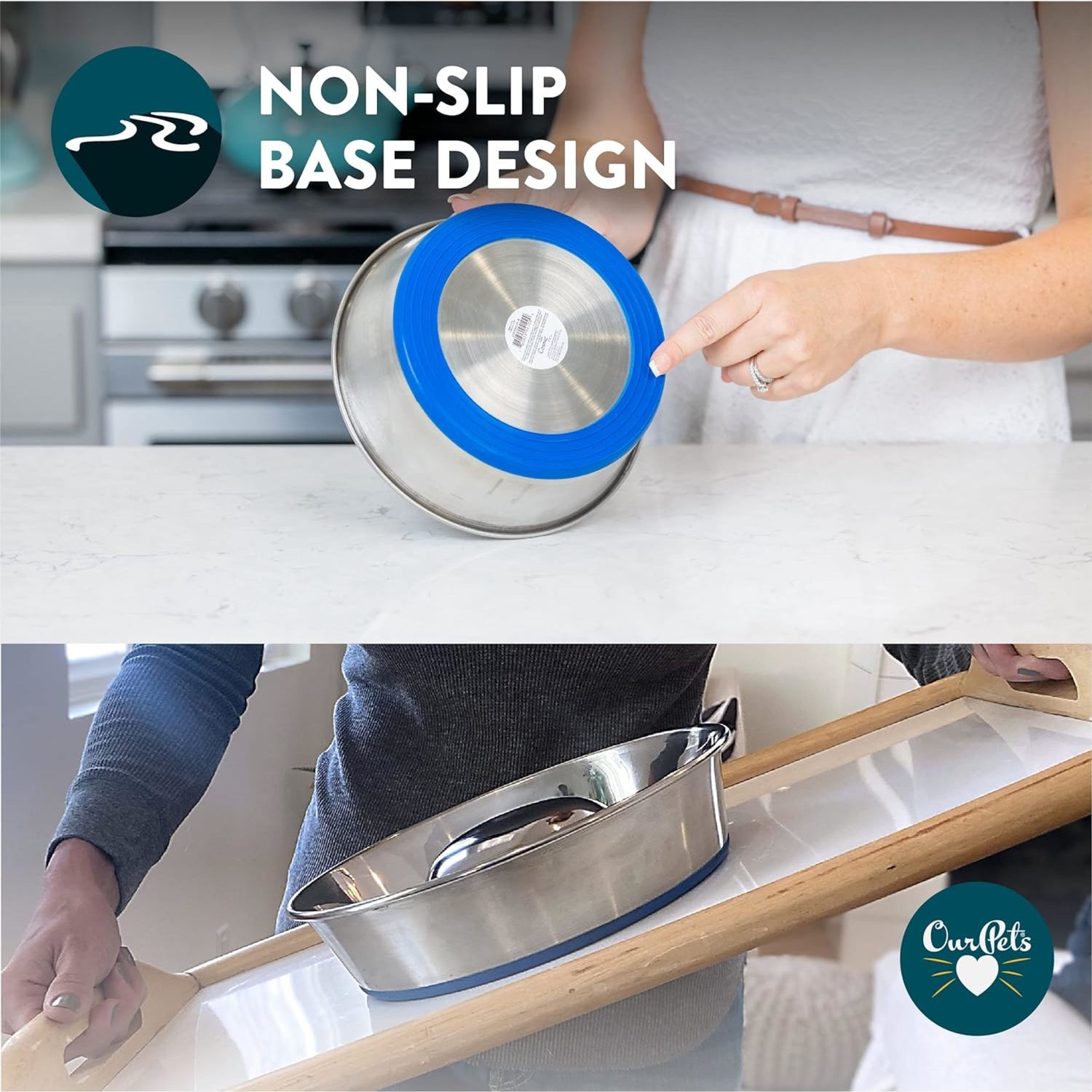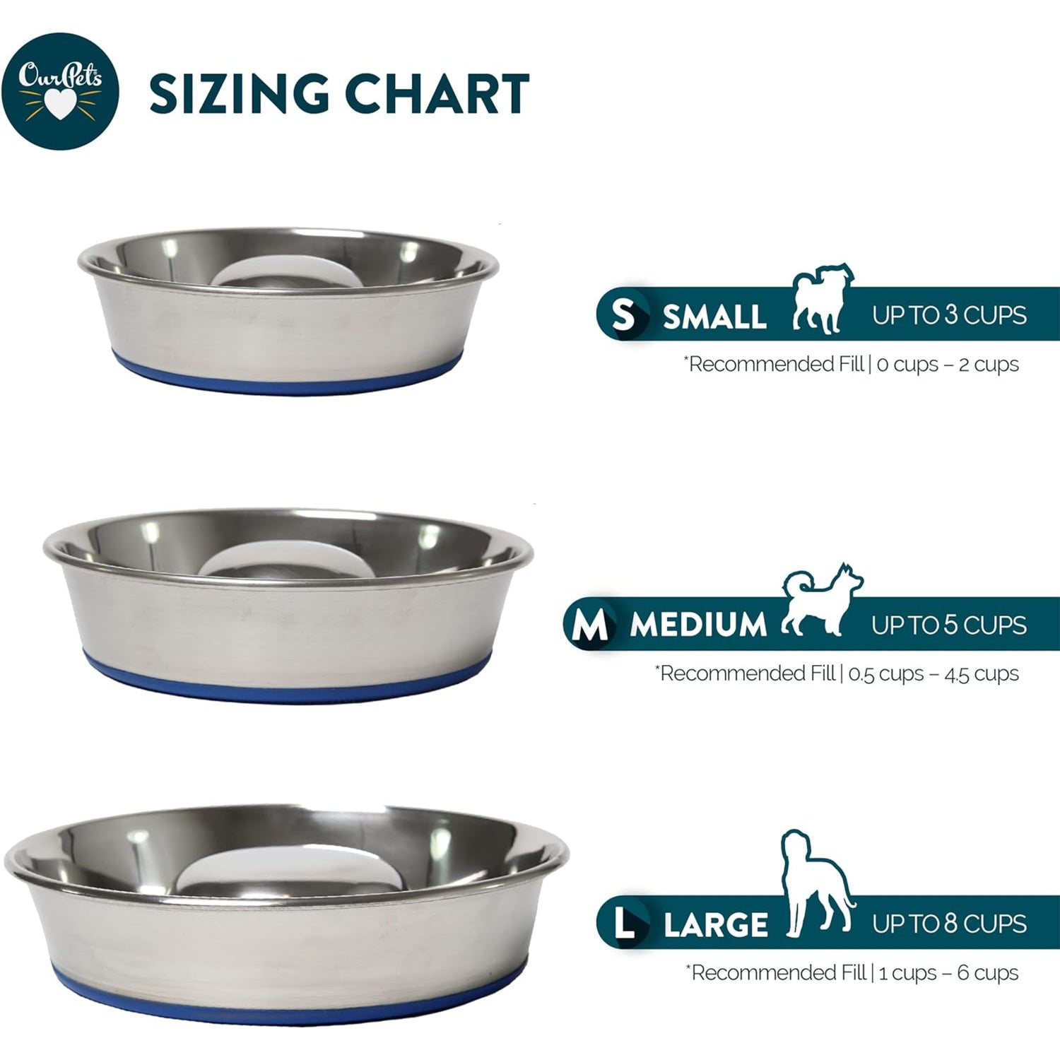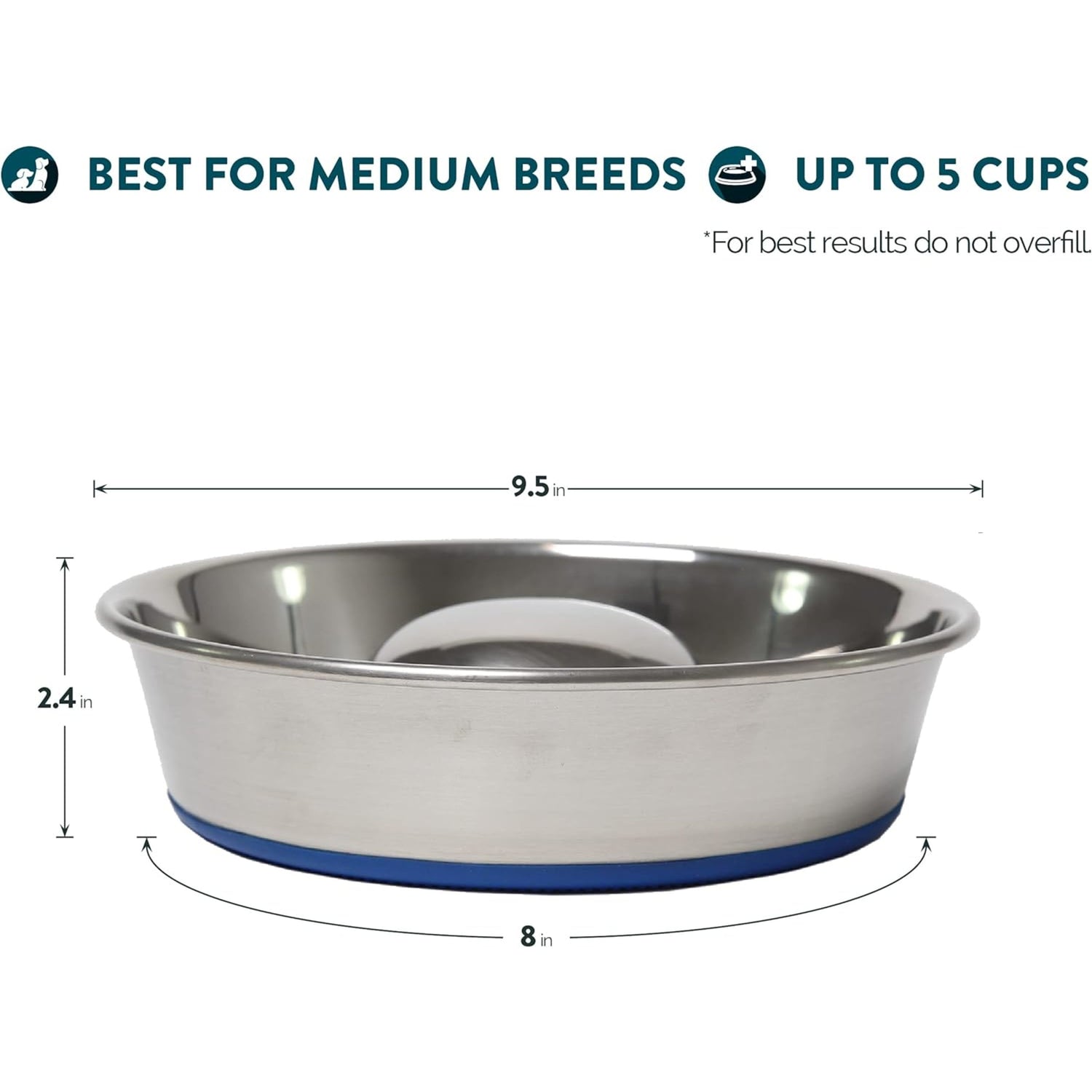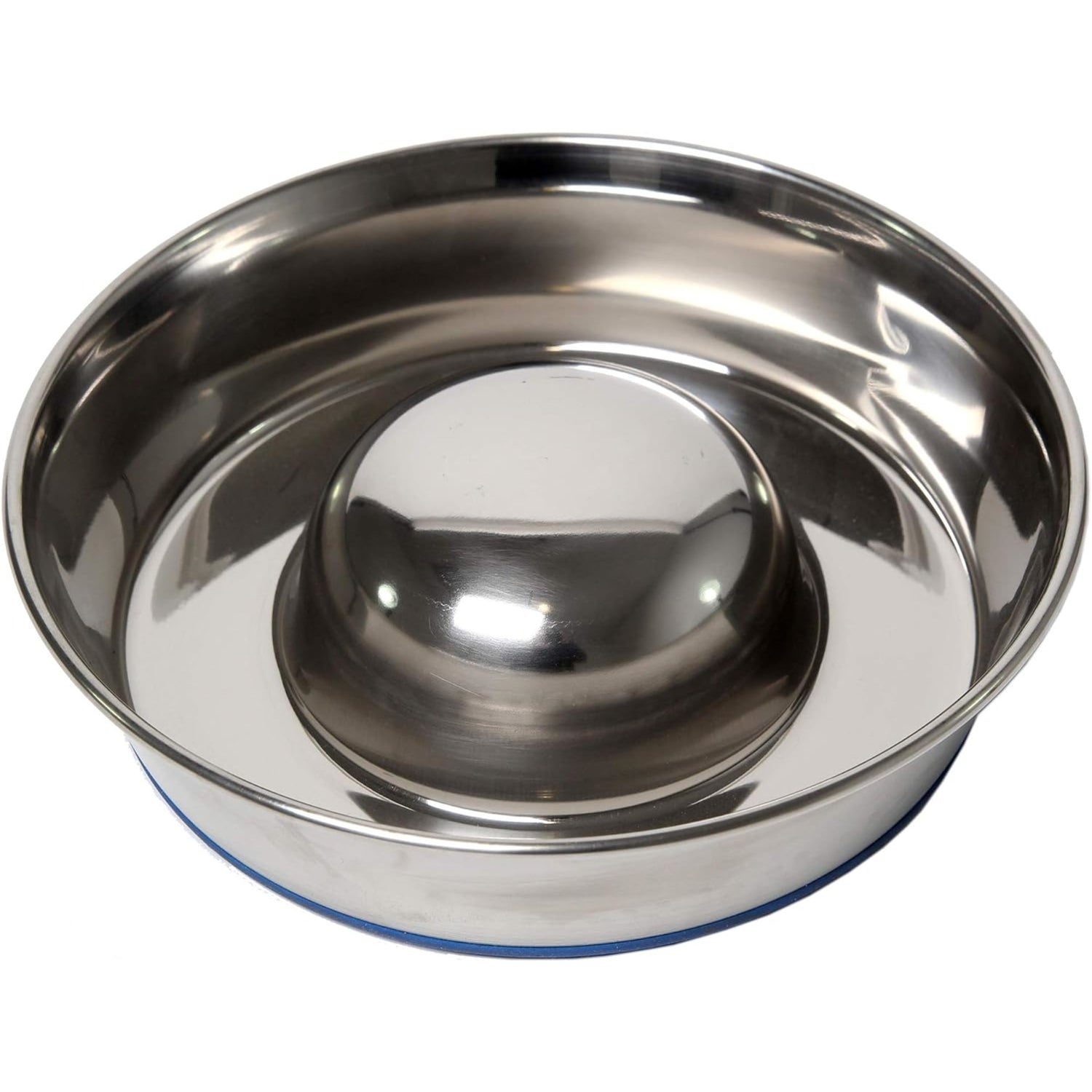 Elevate your dog's mealtime with the Our Pets DuraBowl Slow Feed Stainless Steel Dog Food Bowl. Engineered for safety, the solid centerpiece design encourages slower, mindful eating, reducing choking hazards and aiding digestion. The patented skid-proof bottom ensures stability, preventing sliding and tipping. Crafted from durable stainless steel, this bowl offers a healthier alternative to plastic, challenging your pet's mind during meals. Dishwasher-safe for effortless cleaning, it remains rust-resistant and minimizes odors. Available in three sizes (Small, Medium, Large), accommodating various breeds. Prioritize your dog's well-being and mealtime happiness with the DuraBowl's innovation and durability.