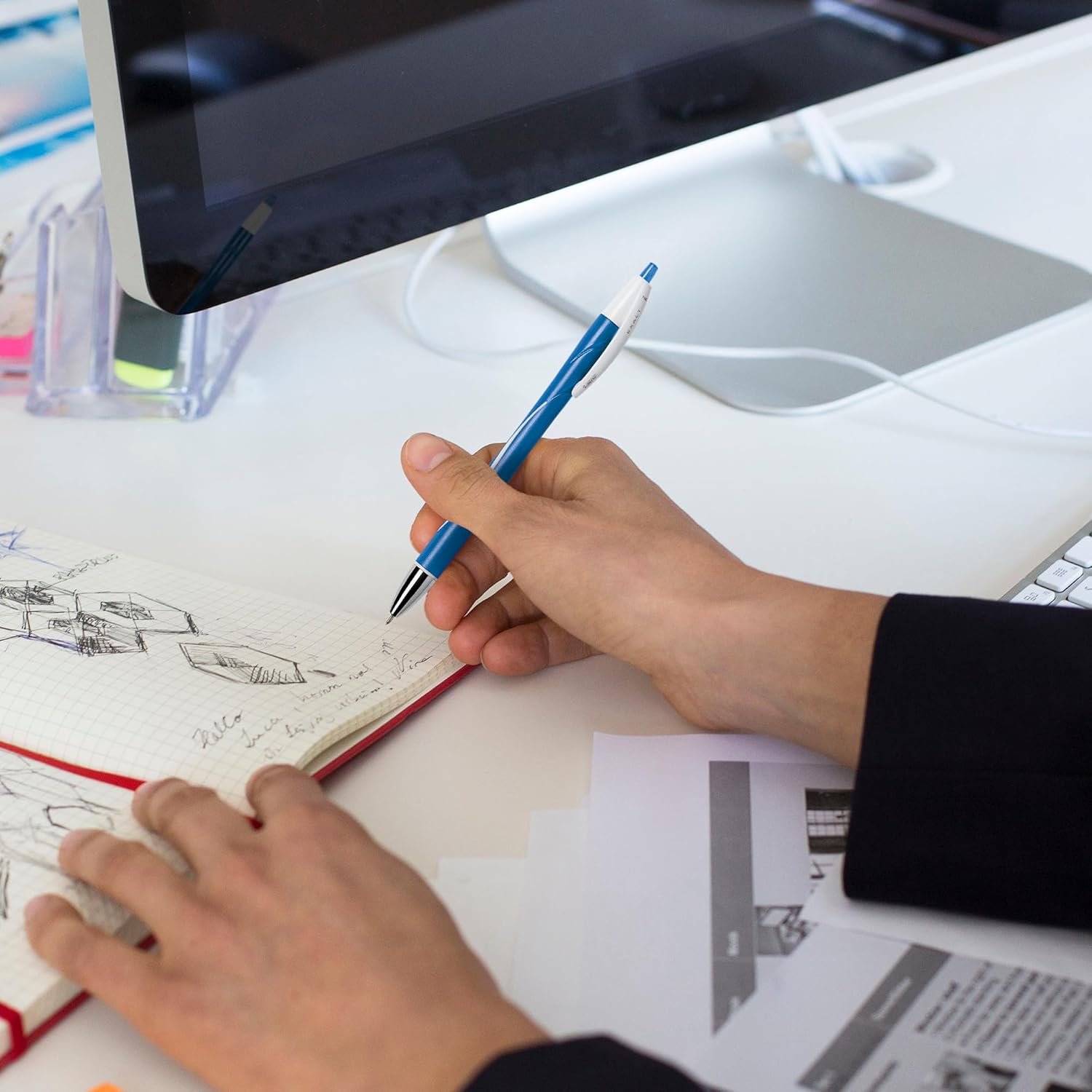 Experience effortless writing with the BiC Glide Retractable Ball Pen, featuring a cushion tip for smooth, consistent strokes. This medium point pen in black ink offers a comfortable rubber grip and a durable metal clip for convenience. Designed with BiC’s trusted ink system, it delivers a smoother glide than classic pens. The retractable design ensures easy use on the go, making it perfect for everyday writing needs. This 3-pack combines reliability and comfort in one sleek package.