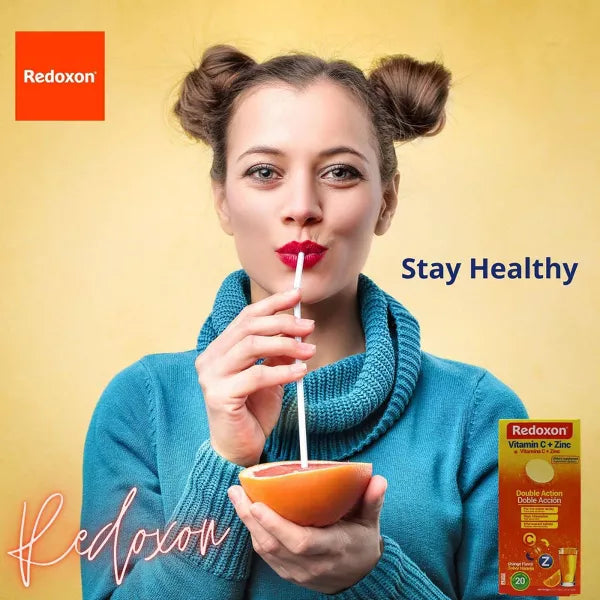 Improve your immune system and maintain good health all year round with Redoxon Vitamin C + Zinc Tablets. Each tablet packs a powerful punch of Vitamin C, equivalent to 10 oranges, in a delicious orange flavor. The effervescence helps improve absorption rate and increase antioxidant levels in your body for up to 24 hours. With the added benefit of Zinc, this non-acidic formula is gentle on your stomach and helps support healthy bones, skin, and blood vessels. Trust Redoxon for a strong and effective immune defense against colds and illness!