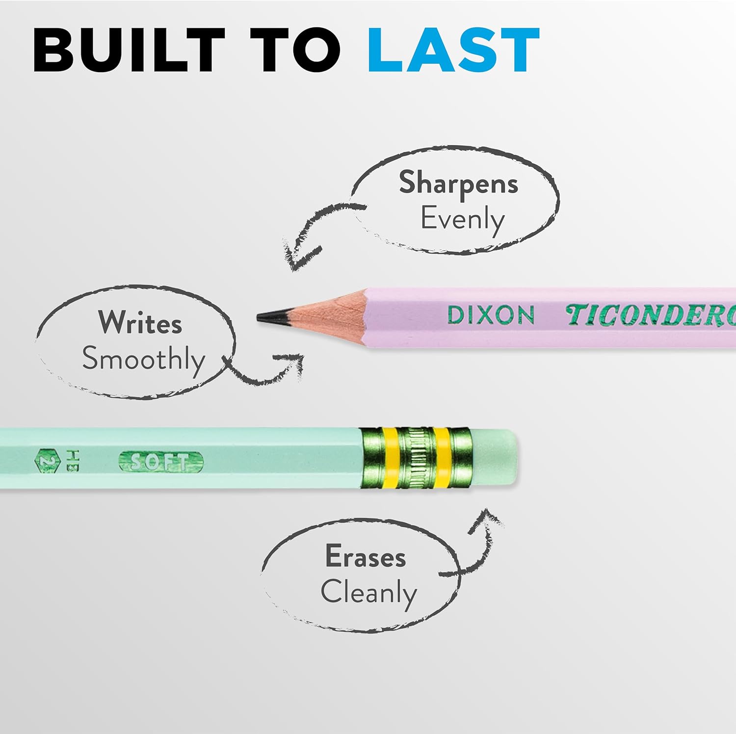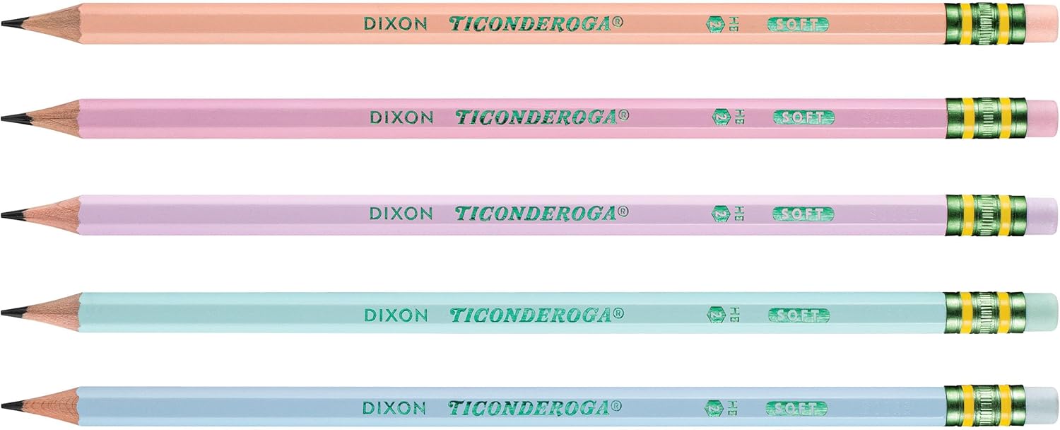 Ticonderoga #2 Soft Colored Pencils in Assorted Pastels, 10 count, let you bring your creative ideas to life with vibrant, smooth colors. Each pencil features a durable wooden body and a graphite core for precise drawing. Equipped with a latex-free eraser, mistakes can be easily and cleanly fixed. Pre-sharpened and ready to use, these pencils are perfect for artists seeking quality and convenience.