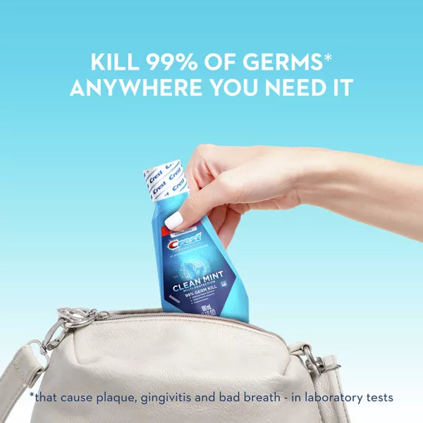 Start improving your oral health today with Crest Pro-Health Multi-Protection Mouthwash. From the very first use, it combats plaque effectively. This Clean Mint formula eliminates 99% of germs without the harsh burn of alcohol. When used twice daily, it offers 24-hour defense against plaque and gingivitis, helping you maintain a healthier mouth compared to brushing alone with regular toothpaste.