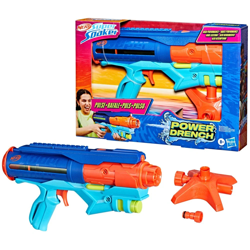 Unleash intense fun with the Nerf Super Soaker Power Drench! Its strong and precise stream reaches long distances, perfect for lightning-fast attacks and battle strategies. The innovative filling system, which connects to a garden hose, allows for endless water play. Get ready for epic water battles that will drench your opponents.
