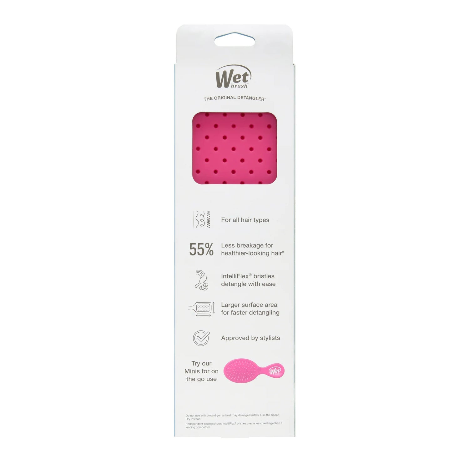 The Wet Brush Paddle Detangler Hair Brush is specially designed for longer hair, keeping strands strong and healthy by gently removing knots without pulling or snagging. Its "IntelliFlex" bristles reduce breakage by 55%, effortlessly gliding through tangles for healthier-looking hair. With a larger surface area for even product distribution and a design that allows quick drainage and easy cleanup, this brush is perfect for long, thick, and coarse hair, transforming your detangling routine.