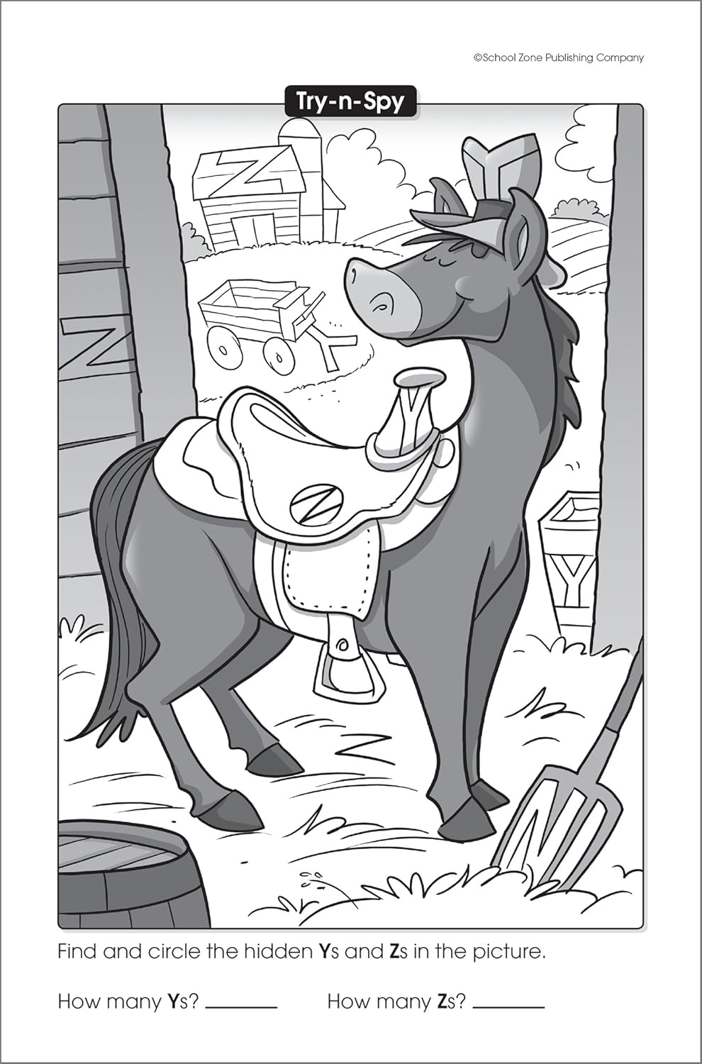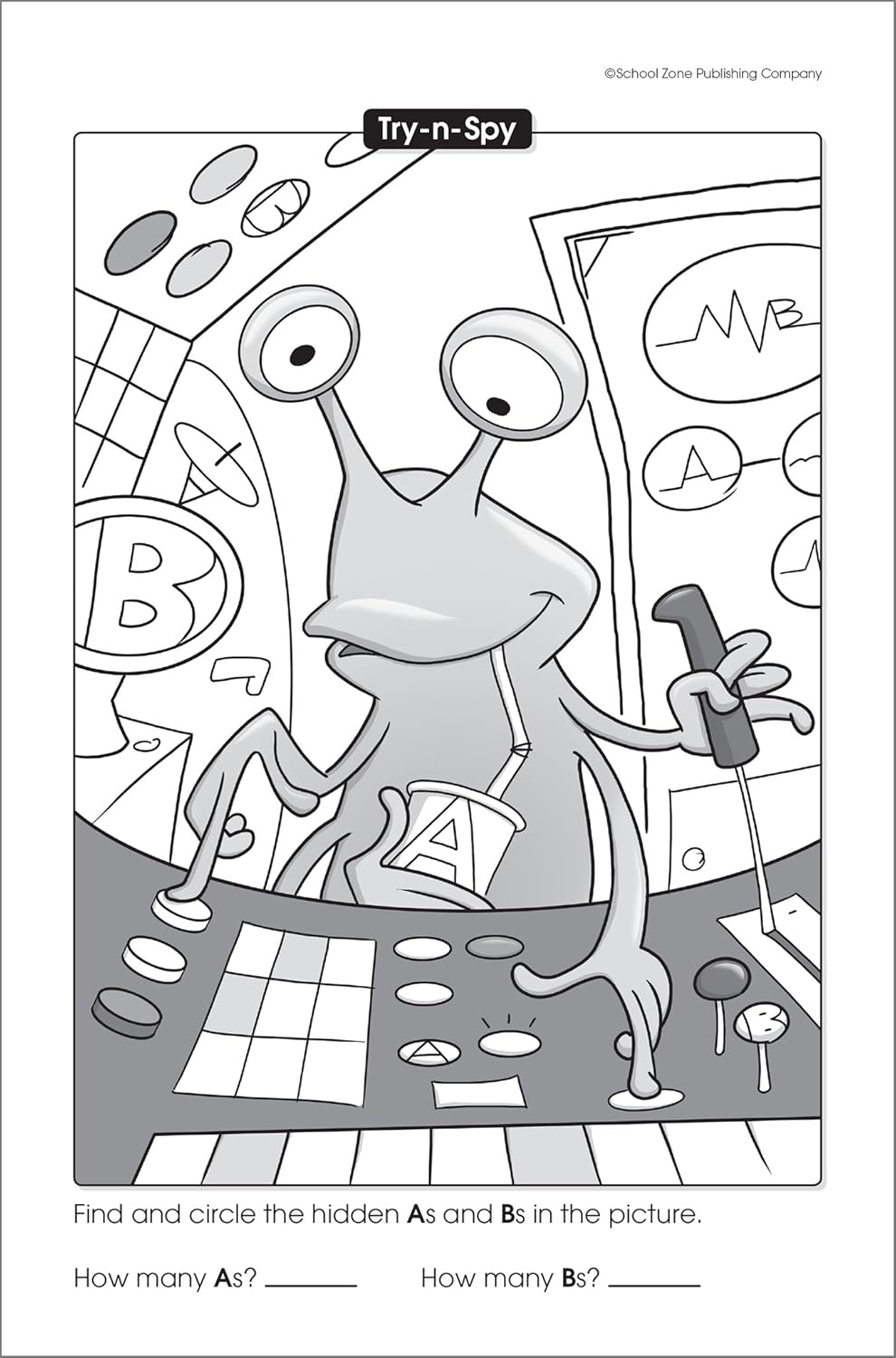 Get ready to boost your child's confidence with the School Zone My First Try-n-Spy Workbook! Each page contains fun and challenging puzzles that will sharpen your child's skills. They can use their senses to find hidden letters and identify objects by their beginning sounds. Plus, the detailed illustrations will spark their imagination and help them focus. With an easy-tear top bound pad, each worksheet is perfect for on-the-go learning. Don't miss out on this portable and educational workbook!