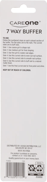 Effortlessly achieve perfectly shaped and groomed nails with the CAREone 7 Way Nail Buffer! Simply start with the coarse grit side to shape your nails, move on to the medium grit to refine their shape, and then use the fine grit to neaten the edges. Next, use the curved sides to even out and smooth the surface of your nails. Finally, finish off with the buffing and shining sides for a natural matte finish and unparalleled shine. Follow the numbered steps on each colored section for best results. Trust us, your nails will thank you!