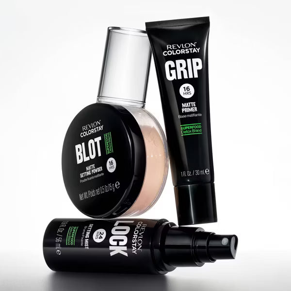 A setting powder with blotting power! Revlon ColorStay™ Blot Setting Powder is a mattifying powder fused with a shielding blend that provides non-stop matte for up to 16 hours. Triple-power action mattifies, absorbs oil and reduces the appearance of pores while controlling shine all day. The silky-soft formula creates a flawless matte finish that won’t leave a chalky film on your skin, plus no photo flashback. Infused with a SUPERFOOD DETOX BLEND of Citrus + Aloe + Broccoli that protects skin against the effects of daily aggressors including environmental stress and pollution by neutralizing free radicals. Ideal for all skin tones, the non-cakey formula is free from added parabens, phthalates, and mineral oil.