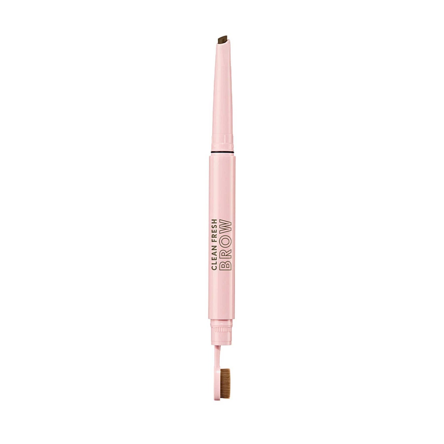 COVERGIRL Clean Fresh Brow Filler Pomade is an ultra-precise beveled triangular eyebrow pencil for foolproof, filled and shaped brows that last all day. The creamy, highly pigmented tip glides effortlessly and precisely with a non-drying, blendable, matte soft finish. The waterproof, clean and vegan formula is infused with brow care ingredients like vitamin E, hyaluronic acid and squalane. The natural-looking formula is sweat-proof and transfer-proof for fuller, long-lasting brows. The paddle-shaped kabuki brush on the end of this waterproof eyebrow pencil blends pigments evenly and easily. Formulated without parabens, mineral oil, talc and fragrance.