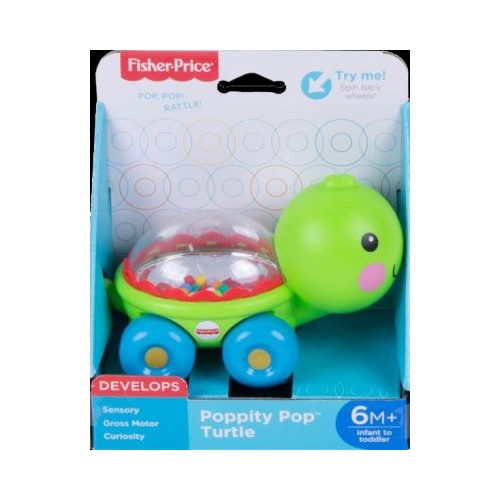 The Fisher-Price® Poppity Pop™ Turtle is a perfect crawl-along pal for baby. Give the cute little turtle a push to make the colorful balls go pop, pop, pop as it rolls along. All that exciting popping action and sounds encourage your baby to push and crawl after their pal.