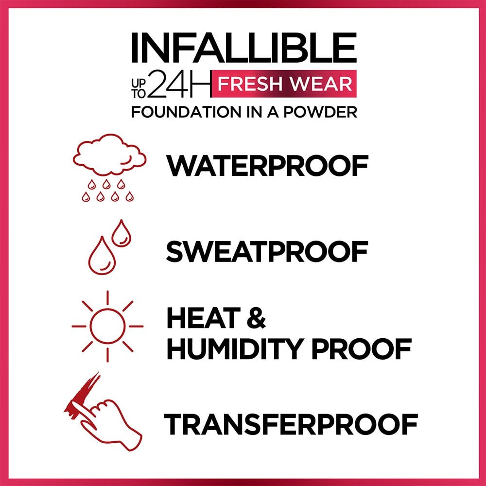 This lightweight powder foundation covers like a liquid and mattifies with no cakey look. The longwear formula is oil-free, waterproof, heatproof, sweatproof, non-comedogenic and suitable for all skin types — yes, even acne-prone skin! Infallible Up to 24H Fresh Wear Foundation in a Powder’s weightless texture gives full coverage and a natural, matte finish that looks fresh hour after hour. The formula feels breathable and light, leaving skin feeling comfortable for up to 24hrs.