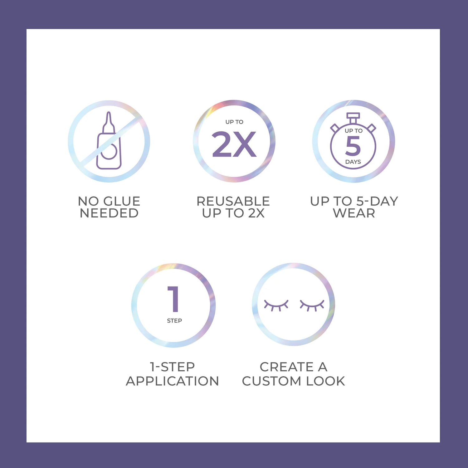 - Pre-bonded lashes press on & last for up to 5 days with no glue, easy application & removal, with no damage to natural lashes